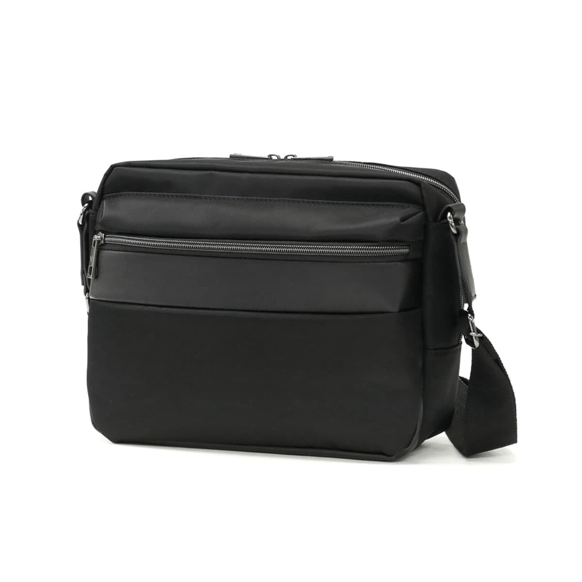 上品でソフトな風合いのナイロン素材と、凹凸感が際立つエンボスレザーの素材コンビネーションが映える、シンプルで大人カジュアルな「アンプル」シリーズ。こちらはA4サイズのショルダーバッグです。