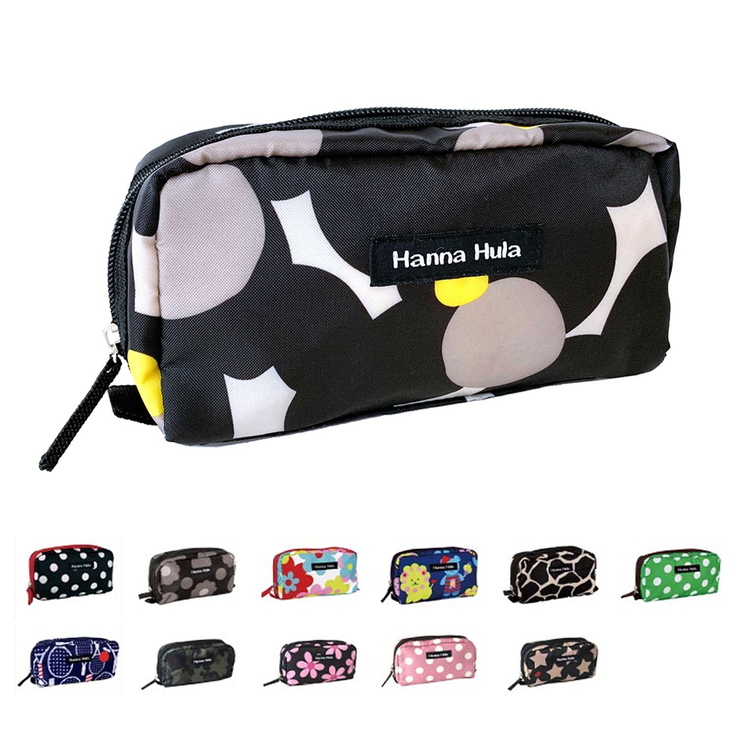 こまごまとした小さいアイテムを収納できるミニポーチコスメポーチとして、お子さまのおもちゃポーチとしてプレゼントとしてもおすすめです撥水加工済み【ハンナフラ/Hanna Hula】ポップでキュートな柄で、毎日の生活をもっと楽しくデザインだけでなく丈夫で使いやすさを重視した、安心の日本ブランド