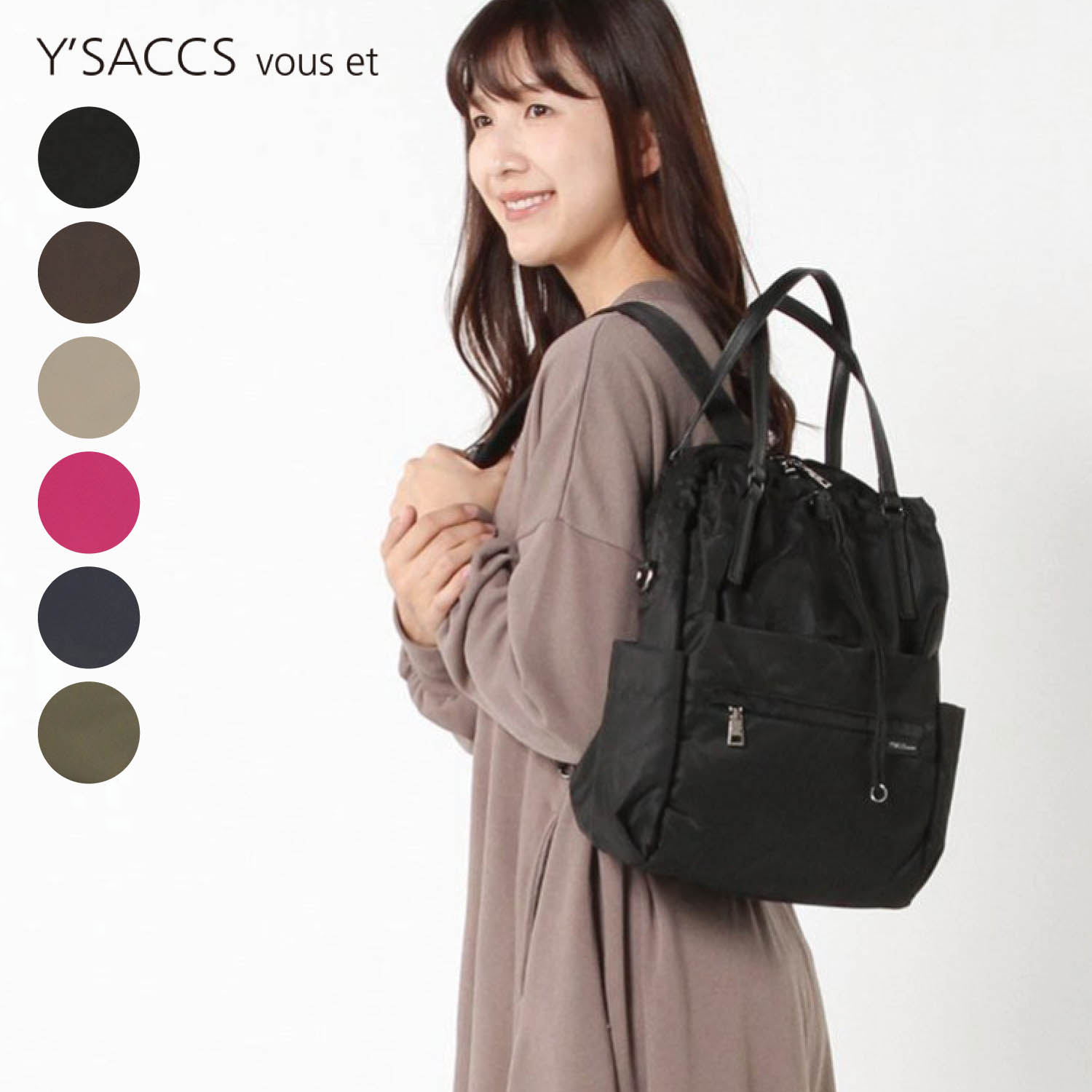 ―デザイン・スタイリング―・リュック、トートバッグ、ショルダーベルトを付けてショルダーバッグ、ポーチもコンパクトショルダーバッグに変化するので、シーンによって持ち方を変えられる・A4対応サイズで通勤通学におすすめ・お好みから選べる6色展開ー素材ーはっ水加工を施したナイロン生地を使用ー機能ー・リュック・トートバッグとしてはもちろん、付属のショルダーベルトを使えばバッグ・ポーチどちらもショルダーバッグとして使用可能・リュックは多収納仕様で荷物の仕分けがしやすい・リュックの肩ひもは背面ポケットに収納可能イザック ブーエ/Y'SACCS vous et「タイムレス・エイジレス・ジェンダーレス」を軸に、Y'SACCSの「シンプルで機能的」なバッグをさらに追及したトリビュートラインです。
