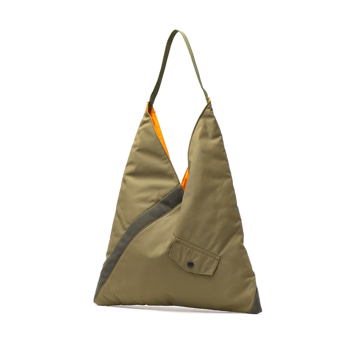 口元のリブや斜めに配置したフラップポケットなどでディティールを表現したLサイズのトートバッグです。