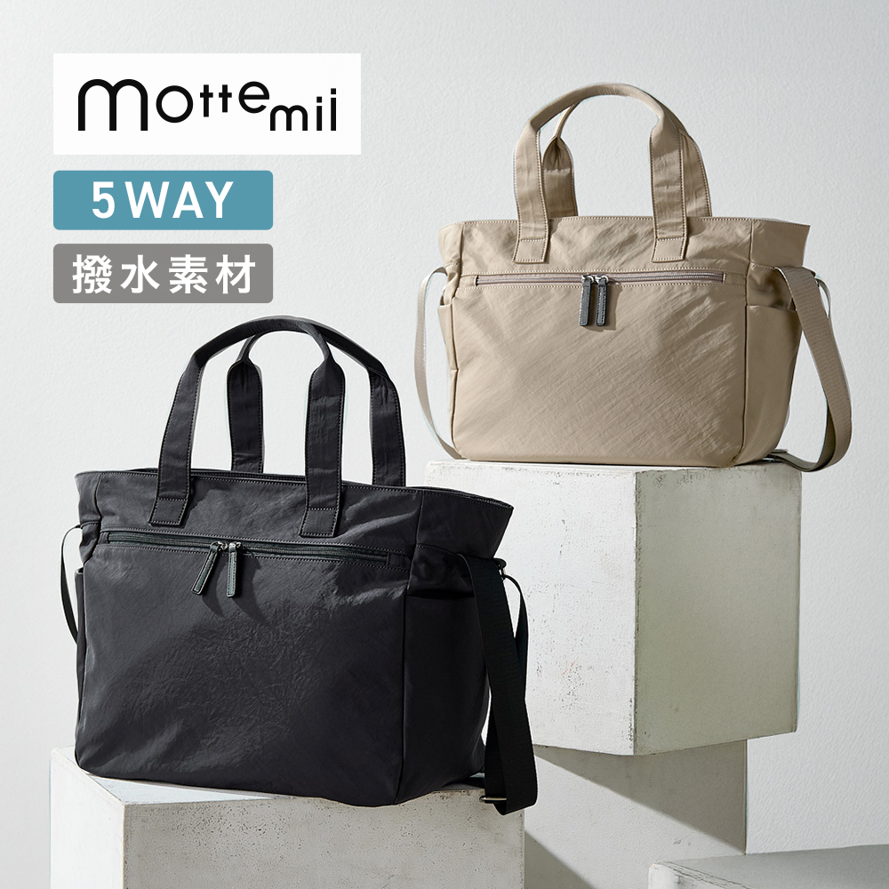 ■【モッテミー/mottemii】歩きながらでも持ち方を変えられる!5WAYバッグ 【肩掛けトート/ショルダー/メッセンジャー/リュック/前抱え】【10ポケット】