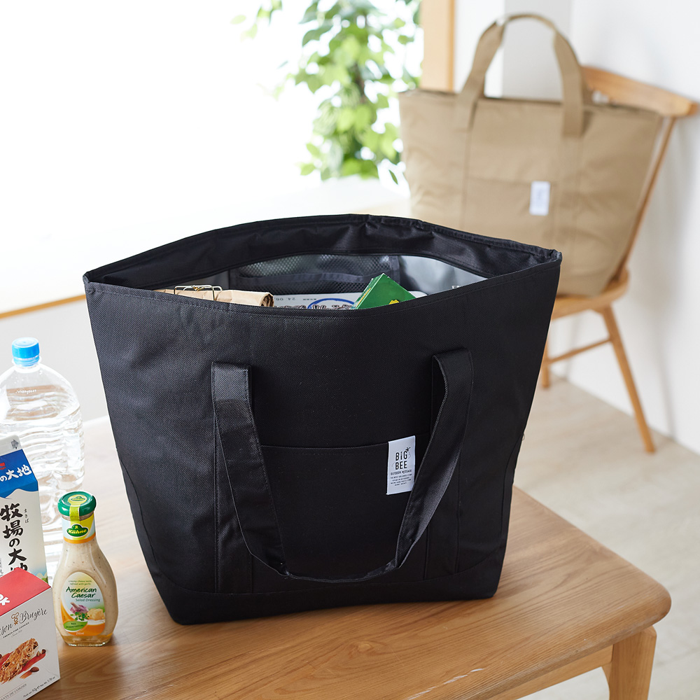 保冷・保温が出来るトートバッグ保冷剤を入れるポケット付き内面は、保冷シートのPEVA素材で防水性も底が広くたっぷり入るからお買い物にもぴったり日常のバッグとしても使えるサイズ感外側にも、鍵や財布を入れられるポケット付き