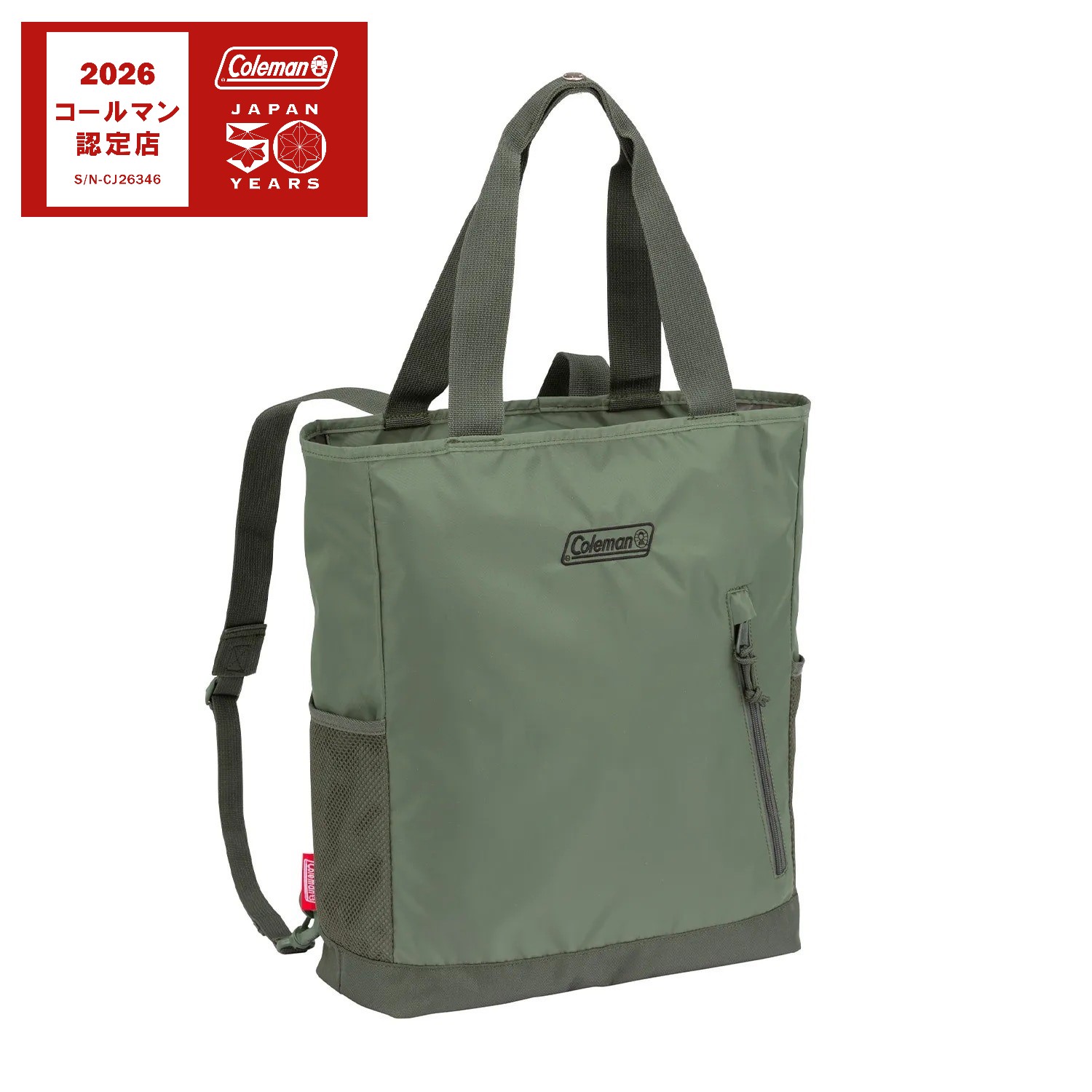 ―デザイン・スタイリング―・リュックとしても使え、シーンに合わせて使い分けできる2WAYトートバッグ・前面の斜めに配したファスナーポケットがデザインアクセント―素材―・軽い使い心地の素材感―機能―・トート型、リュック型で使える2WAY・開閉口はファスナー付き・両サイドにメッシュポケット付き・トートバッグとして使う時は、背面のポケットに肩ひもを収納できて便利・メンズ/ユニセックスとしても使えますコールマン/Colemanコールマンは、アウトドアで「家族」「仲間」「自然」が触れあうことで生まれる心のつながりを大切にします。私たちは、消費者がアウトドアでの生活をより快適に楽しめる製品を創り出すことでビジョンを達成します。