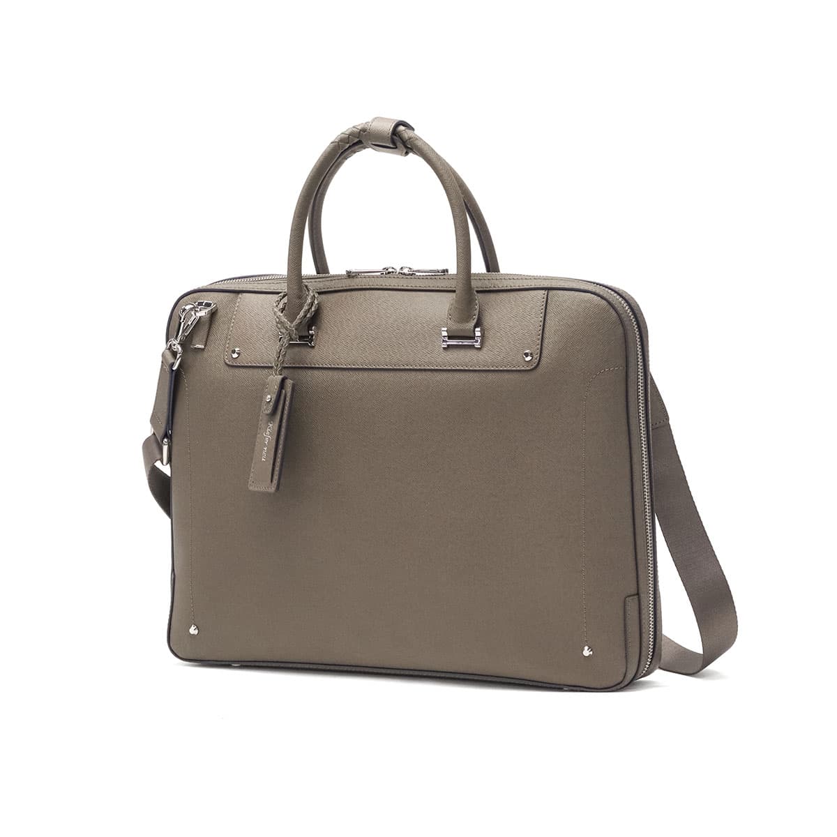 手間のかかるポストミシンを駆使することで、立体的なフォルムで仕上げた『Sottile/ソッティーレ』シリーズのブリーフケース(S)。シンプルで飽きのこないデザインはスーツと相性が良く、上質な佇まいでビジネスシーンをより引き立てます