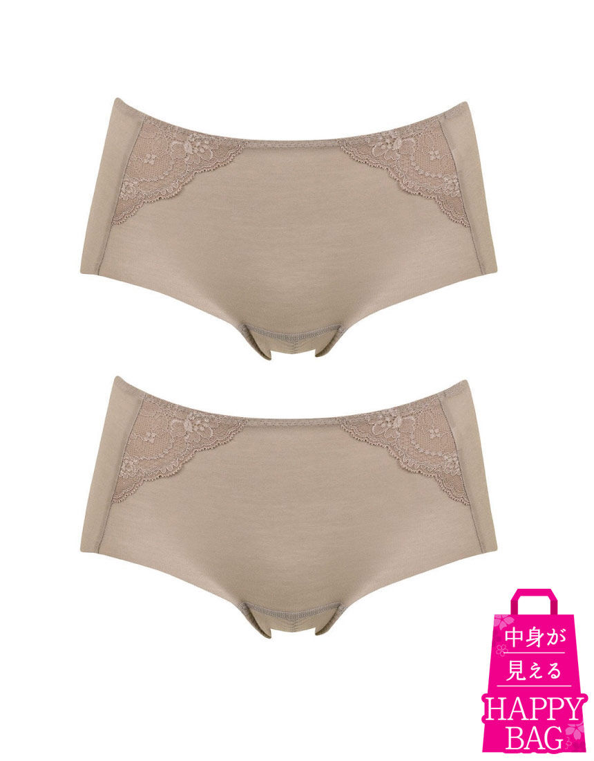 お得な福袋〜Happy Bag〜【Wingのサニタリーショーツ2枚】が入った福袋です。羽付きナプキンに対応するサニタリーショーツ●ここちよいフィット感 身生地部は伸びのよいオーガニックコットン混素材を使用●ズレにくい クロッチ(股布)からバック部分はギャザーテープでナプキンがズレにくい仕様●アウターにひびきにくい 裾はフラット仕上げでラインがひびきにくい・はきこみ丈:ふつうフロントにさりげなくレースをあしらったシンプルなデザインに、生理中を快適に過ごす工夫がいっぱい。身生地部に伸縮性のあるオーガニックコットン混素材を使用した、ここちよいフィット感のサニタリーショーツ。クロッチ(股布)からヒップ中央に向かってギャザーテープをあしらい、ナプキンがズレにくい設計に。羽付きナプキンに対応した、浮かしマチ肌側は防水布を使用。裾はアウターにひびきにくいフラット仕上げで、生理中もおしゃれを楽しみたい気分にやさしく寄り添います。※オーガニックコットンは、栽培時の農薬や化学肥料を抑え、土壌汚染など環境に配慮した素材です※商品画像はあくまでイメージです。※ご注文が集中した場合、注文状況が<在庫有り>と表示されていても完売となる場合がございます。※商品によってハンガーが付いているものもの、ないものが混在している場合がございます。※こちらの商品につきましては、お客様のご都合による返品や交換は承っておりません。予めご了承ください。※ハッピーバッグ(福袋)のご注文はお一人様10点までです。
