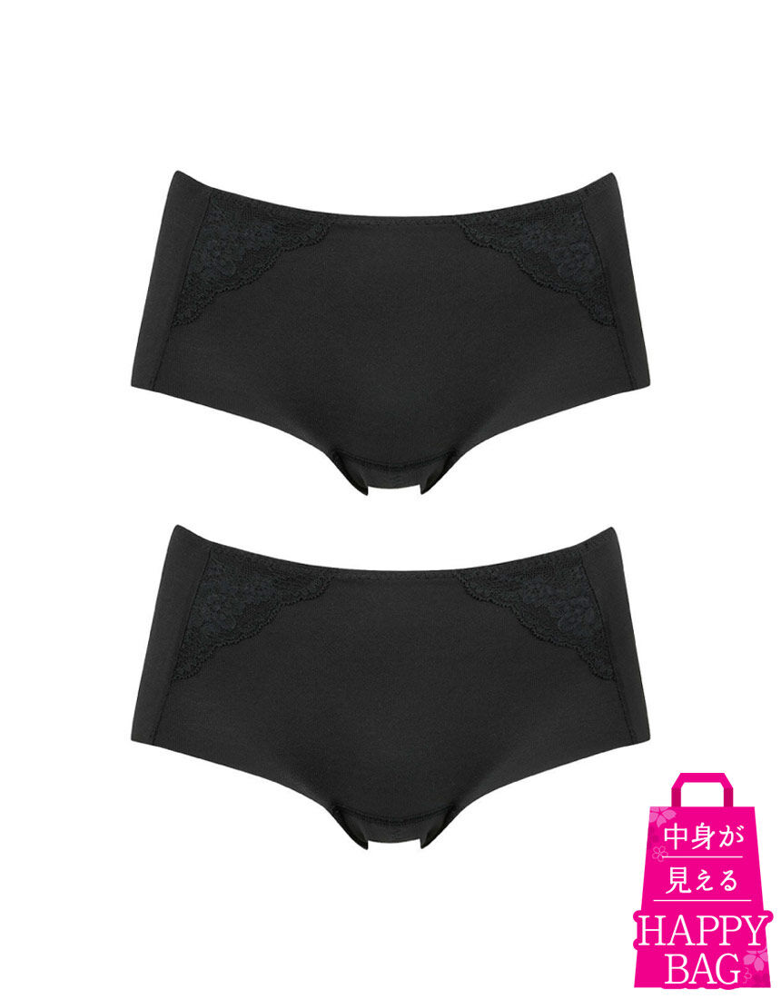 お得な福袋〜Happy Bag〜【Wingのサニタリーショーツ2枚】が入った福袋です。羽付きナプキンに対応するサニタリーショーツ●ここちよいフィット感 身生地部は伸びのよいオーガニックコットン混素材を使用●ズレにくい クロッチ(股布)からバック部分はギャザーテープでナプキンがズレにくい仕様●アウターにひびきにくい 裾はフラット仕上げでラインがひびきにくい・はきこみ丈:ふつうフロントにさりげなくレースをあしらったシンプルなデザインに、生理中を快適に過ごす工夫がいっぱい。身生地部に伸縮性のあるオーガニックコットン混素材を使用した、ここちよいフィット感のサニタリーショーツ。クロッチ(股布)からヒップ中央に向かってギャザーテープをあしらい、ナプキンがズレにくい設計に。羽付きナプキンに対応した、浮かしマチ肌側は防水布を使用。裾はアウターにひびきにくいフラット仕上げで、生理中もおしゃれを楽しみたい気分にやさしく寄り添います。※オーガニックコットンは、栽培時の農薬や化学肥料を抑え、土壌汚染など環境に配慮した素材です※商品画像はあくまでイメージです。※ご注文が集中した場合、注文状況が<在庫有り>と表示されていても完売となる場合がございます。※商品によってハンガーが付いているものもの、ないものが混在している場合がございます。※こちらの商品につきましては、お客様のご都合による返品や交換は承っておりません。予めご了承ください。※ハッピーバッグ(福袋)のご注文はお一人様10点までです。