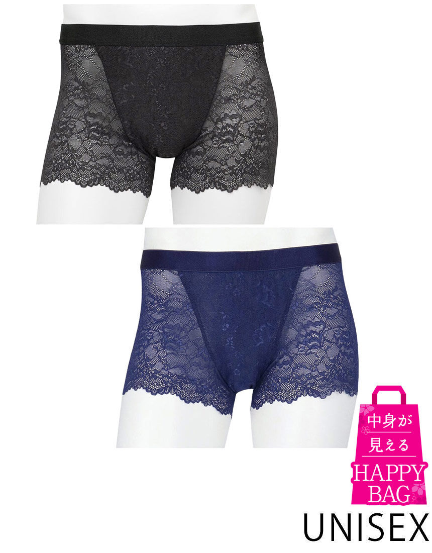 お得な福袋〜Happy Bag〜<レースボクサーTM>"美しさ"と"快適さ"を追求した「レースボクサーTM」のユニセックスモデルが登場。お客様の声から生まれた新色が登場!ユーザー人気投票の上位2色を商品化しました!■通気性通気性のよい素材を使用。■スカラ始末スカラ始末で裾部分に縫製がないので、アウターにひびきにくい。※この商品に使用しているレース素材は、透け感・通気性が特徴ですが、レース特有の素材感が肌の性質や体調により、肌ざわりが気になる場合があります。・はきこみ丈:ノーマル・股下丈:ノーマル丈・前閉じ通気性のよいメンズオリジナルレースを使用。裾部分に縫製がないので、アウターにラインが出にくい。透け感のある花柄レースでワコールメンならではの素材感。フロント部分は立体感をなくしたすっきり設計で、当て布つき。マチ部分の肌側は綿素材を使用。男女ともに自由に楽しめる、レースボクサー。※「レースボクサーTM」は株式会社ワコールの登録商標です。【サイズ詳細】Sサイズ:レディースショーツMサイズ相当(ヒップ87〜95cm)Mサイズ:レディースショーツLサイズ相当(ヒップ92〜100cm)Lサイズ:レディースショーツLLサイズ相当(ヒップ97〜105cm)※各サイズのウエストサイズは、サイズ表をご確認下さい。※商品画像はあくまでイメージです。※ご注文が集中した場合、注文状況が<在庫有り>と表示されていても完売となる場合がございます。※こちらの商品につきましては、お客様のご都合による返品や交換は承っておりません。予めご了承ください。※ハッピーバッグ(福袋)のご注文はお一人様10点までになります。