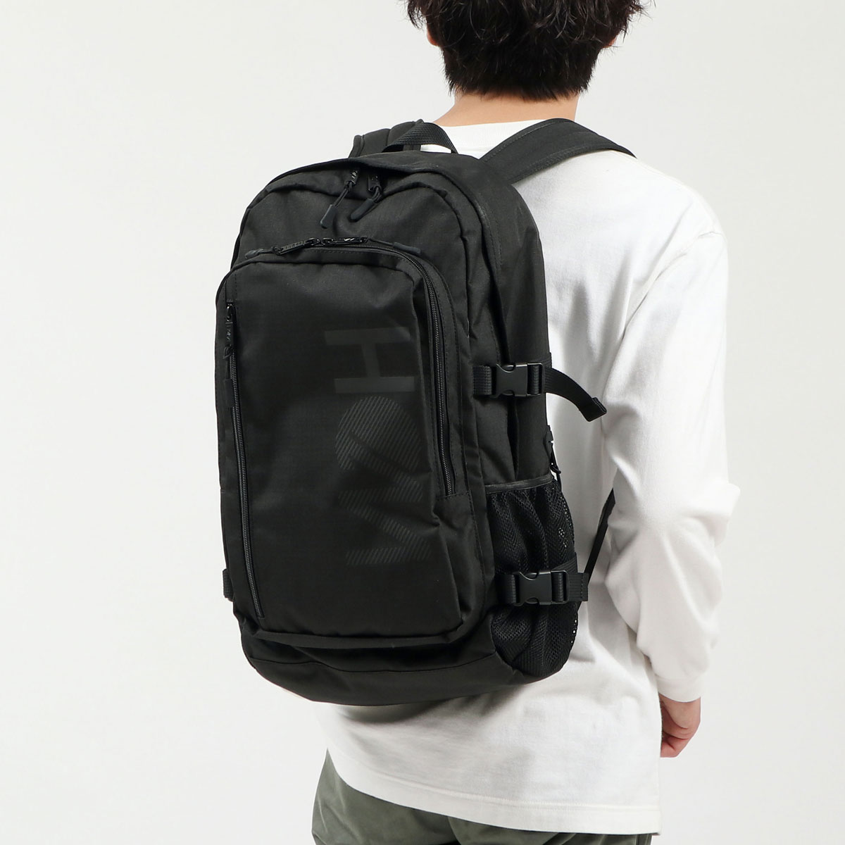 撥水加工を施した生地を使用することで水や汚れを防ぎ、多機能な作りが魅力のリュックサック。A4対応サイズで、毎日の通学や部活だけでなく、休日のカジュアルスタイルにも使いやすいサイズ感。シンプルながら、少しインパクトのあるロゴプリントが特徴です。