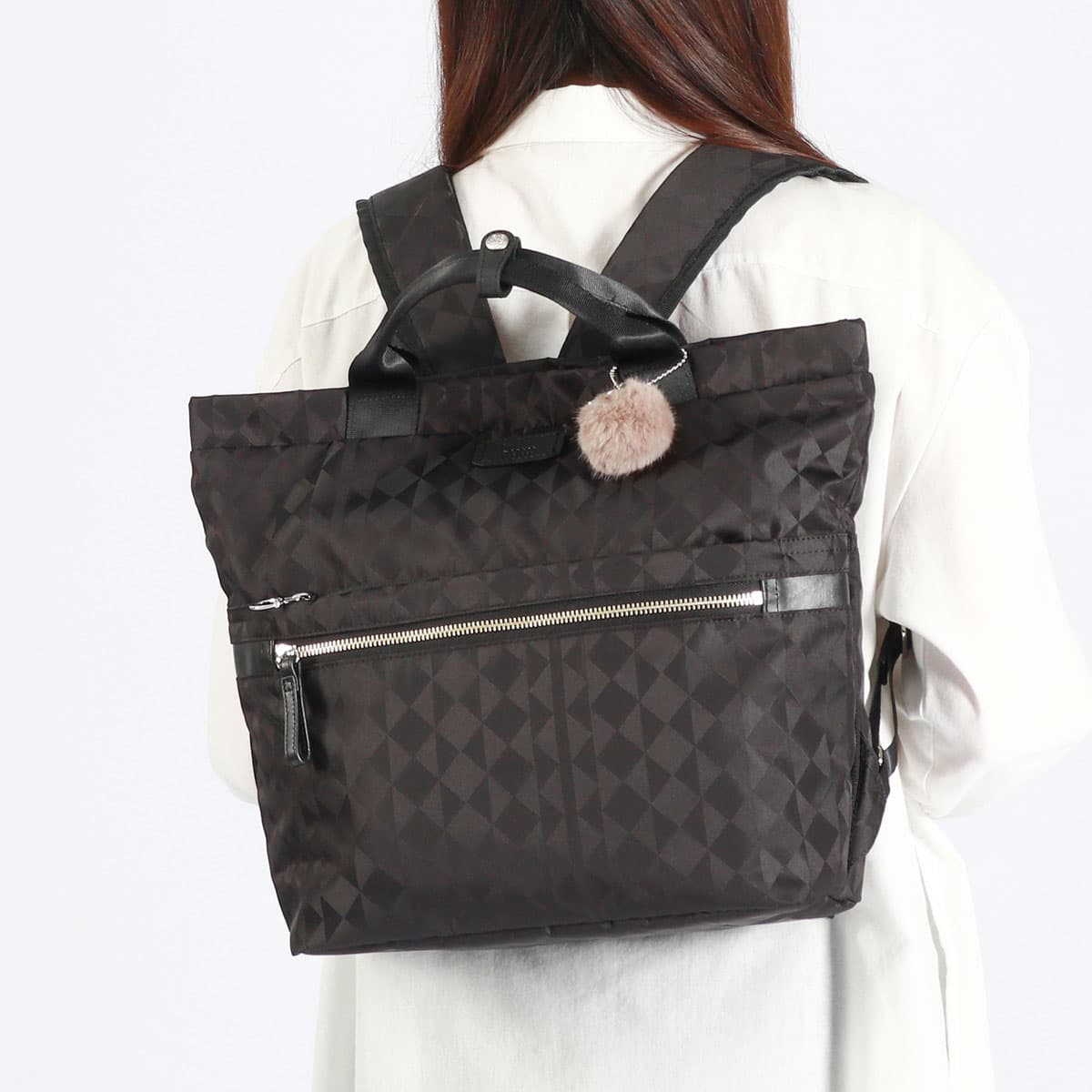 使い勝手の良い大きな外ポケットが特徴の軽量バッグシリーズ。シンプルでいて丸みのあるフォルムのフロントポケットが印象的な大人カジュアルシリーズです。A4ファイルや500mlペットボトルが入るサイズ感で、収納力たっぷりのリュックサック。街歩きやおでかけ、旅行におすすめです。出し入れしやすい前ポケットの中には小さなポケットをたくさん配置し、細かなアイテムをすっきり美しく整理整頓できることにこだわりました。カナナモノグラムパターンを軽やかな線で表現したプリントを施した素材を採用。Kananaらしさが際立つユニークで新鮮なデザインに仕上げています。●大きめのフロントポケット…口が大きく開き、小物類をスムーズに出し入れできるファスナー付きフロントポケット。スマートフォンやハンカチ、サプリメントなど、細かいアイテムの収納に最適です。●メイン収納…メイン気室も整理整頓がはかどる機能が充実。中に入れたものが一目でわかるメッシュポケット、ペットボトルや折りたたみ傘などが収納可能なボトルホルダーなどを配置。●サイドポケット…通気性のあるメッシュ素材を採用。小さめの折り畳み傘や、タオルなどバッグの中に入れたくない湿気のあるものの収納にも便利です。●背面ポケット…セキュリティー性の高い背面ファスナーポケット付き。●セーフティロック…メインファスナーには、不用意に開かないようにするセーフティロック付き。●リュックベルト…パット部分がフィットしやすいよう、リュックベルトは上下で調節可能。●レザーハンドル…手で持ったときの美しさにもこだわった、2本のハンドル付き。お使いいただくごとに手に馴染んでいく本革を使用しています。●速乾素材…背面とリュックベルト裏には速乾素材を採用。暑い夏はもちろん、オールシーズン快適にお持ちいただけます。●旅のお守り"カナナ"付き…旅先でハッピーが生まれますように。そして元気で帰ってきますように。そんな願いを込めた旅のお守りチャームを付属。●リサイクル生地を使用…本体生地にリサイクルポリエステル素材を採用。軽さと清涼感を感じる爽やかな素材感です。