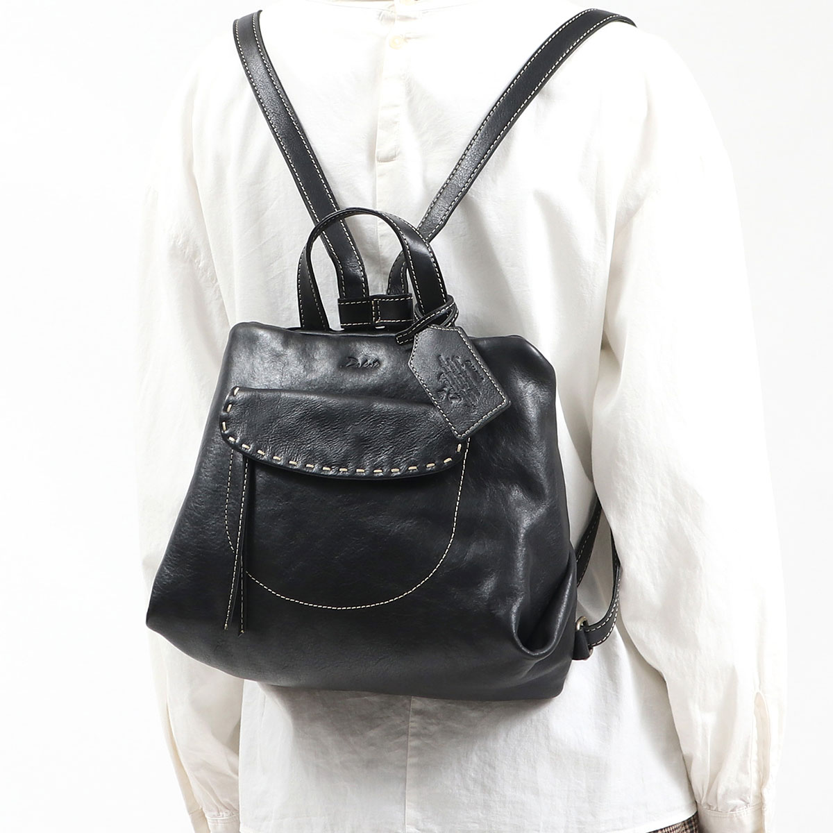 『シャーロット』シリーズのリュックサック。財布やポーチはもちろん、500mlのペットボトルもしまえるサイズ感。内外にポケットを設けているので、小物などを仕分けて収納可能。メインルームの収納口が背面側にあるため、セキュリティ面でも心強いアイテムです。
