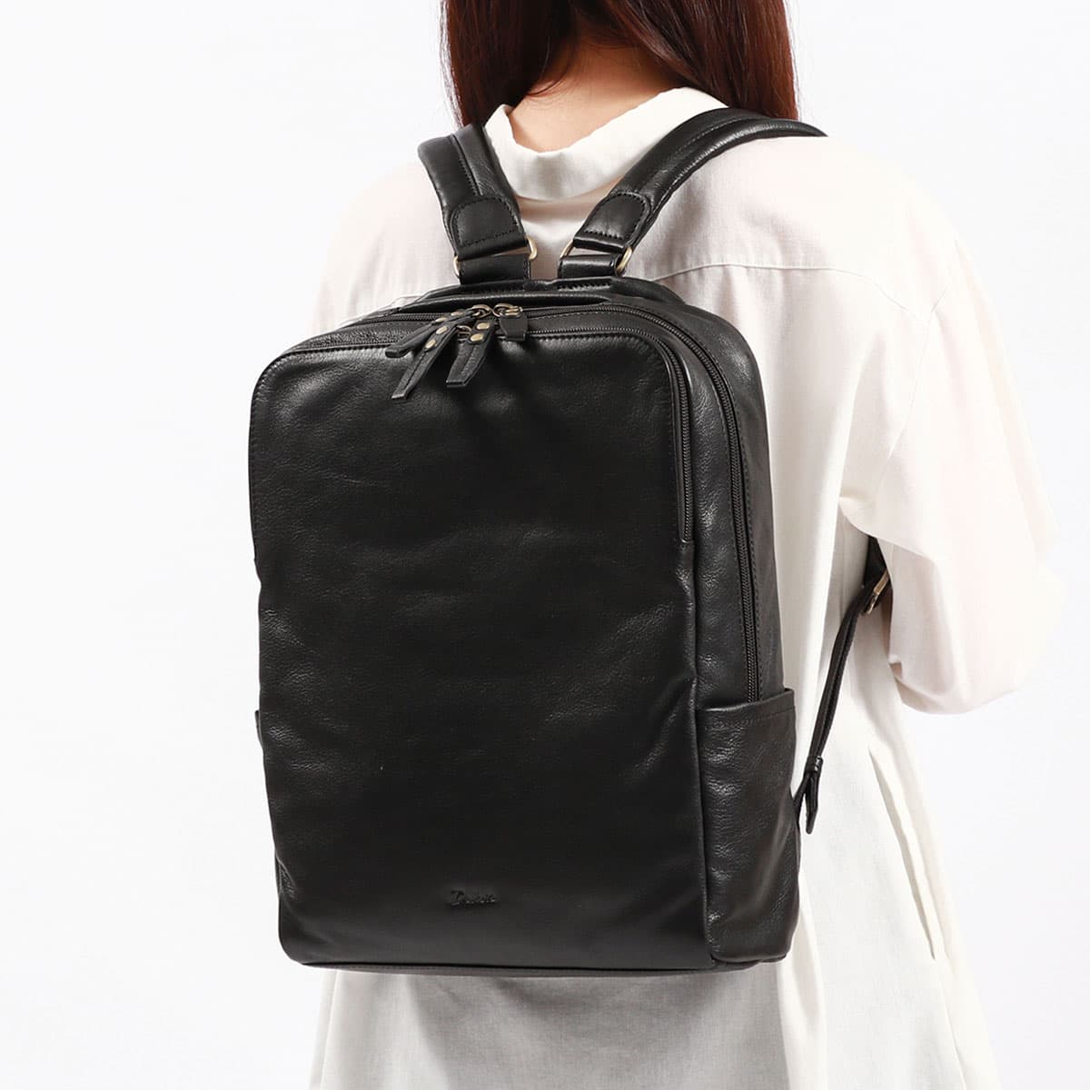 程よい艶と細かなシボ感が特徴のやぎ革を使用したシリーズ『ファレル』のリュック。カジュアルになりがちなリュックも、上品なレザー仕立てで大人な雰囲気を演出します。