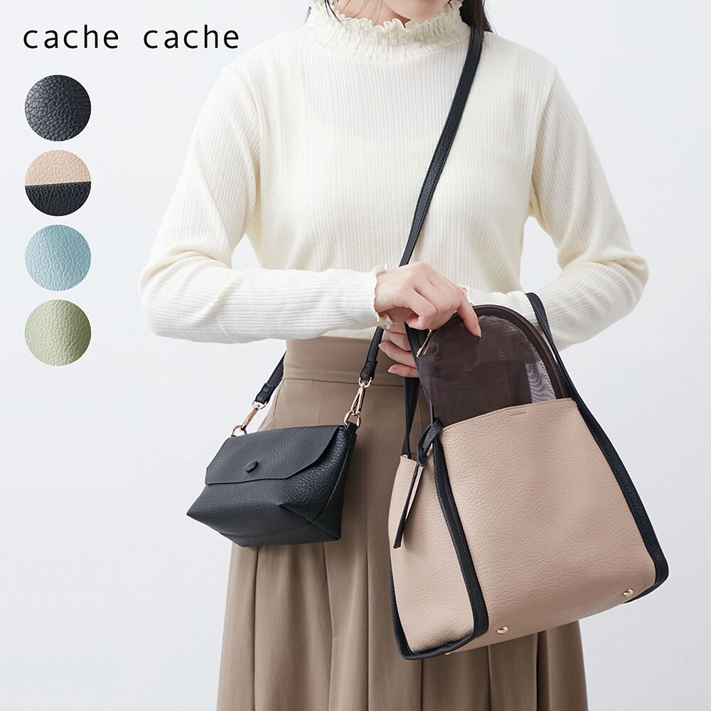 ■【カシュカシュ/cache cache】ミニショルダー付きやわらかミニバッグ【3点セット】