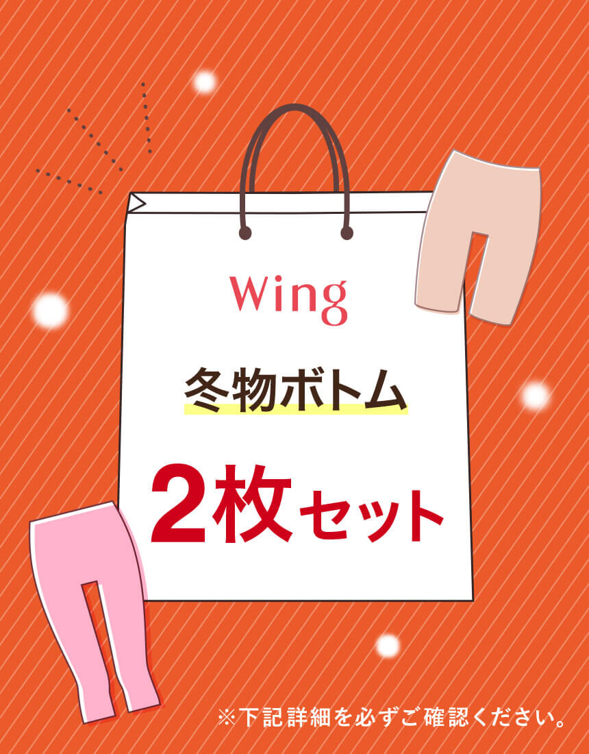 お得な福袋〜Happy Bag〜【ウイング 冬用ボトム2枚】が入ったお得なセット!数量限定なので、お早めにどうぞ!!足首丈やひざ下丈、ひざ上丈のボトムが混在しています。※商品画像はあくまでイメージです。※ご注文が集中した場合、注文状況が<在庫有り>と表示されていても完売となる場合がございます。※商品によってハンガーが付いているものもの、ないものが混在している場合がございます。※WHと表示されていますが、複数色の商品が入っております。※こちらの商品につきましては、お客様のご都合による返品や交換は承っておりません。予めご了承ください。※ハッピーバッグ(福袋)のご注文はお一人様10点までです。
