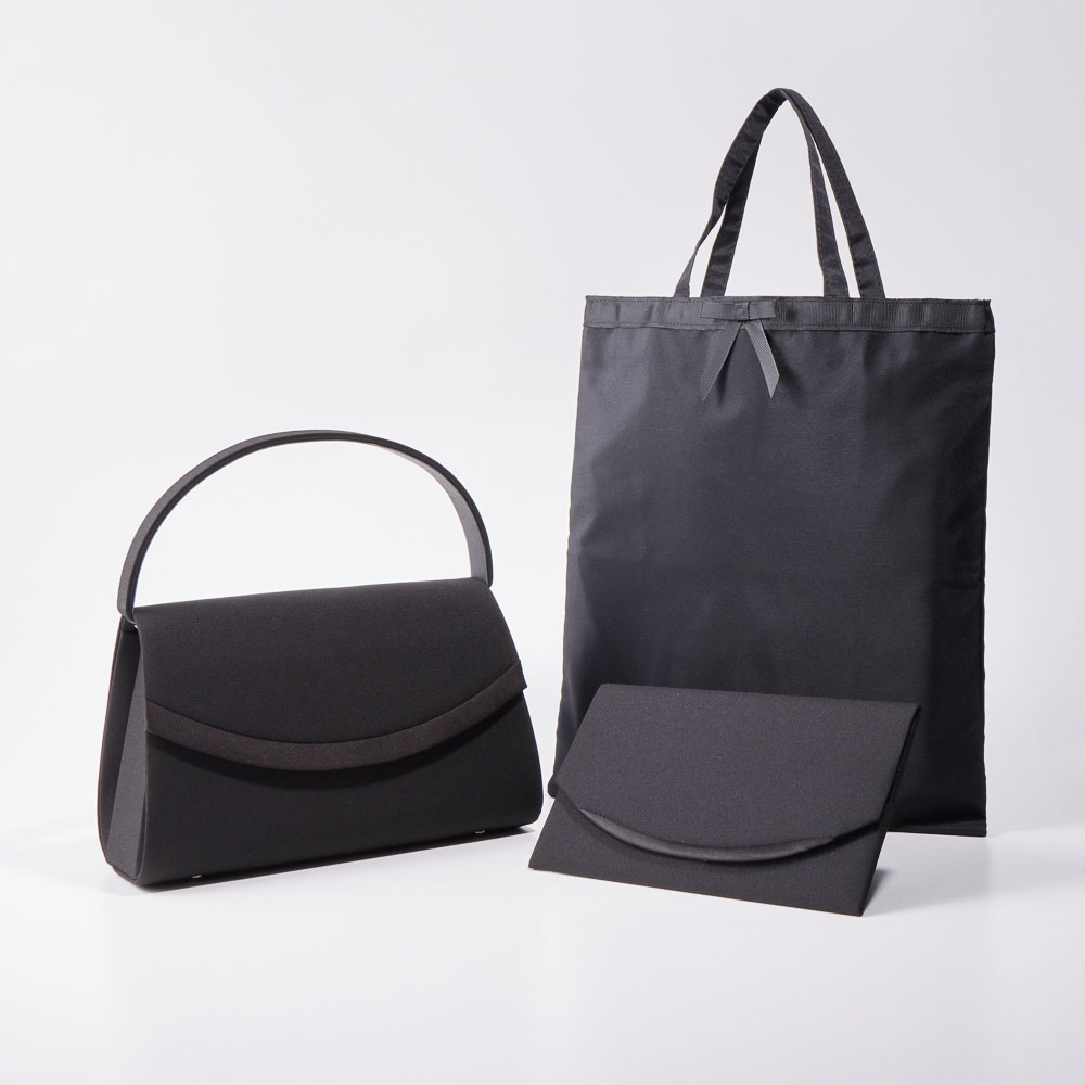 ーデザイン・スタイリングー・トートバッグ、ハンドバッグ、ふくさの3点セット・これさえあれば、急なフォーマルシーンもOK・幅広いシーンや着こなしにマッチするシンプルなデザインー素材ー・マットな風合いのフォーマルな素材