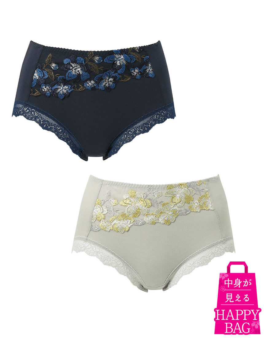 お得な福袋〜Happy Bag〜【Wing/レシアージュのショーツ2枚】が入ったお得なセット!伸びやかなオーガニックコットン混がここちいい華やかレースのペアショーツ●ペアコーデが楽しめる ブラ(PB5010)とペアのレースを使用●ほどよいフィット感 身生地は伸びがよいオーガニックコットン混素材を使用・はきこみ丈:ふかめ(深ばき)ブラ(PB5010)とのペアコーデが楽しめる華やかなショーツ。フロントには刺繍レースの花を上品に咲かせたラグジュアリーなデザイン。身生地には、よく伸びるオーガニックコットン混素材を使い、ほどよいフィット感に仕上げました。華やぎもリラックスも満たしてくれる、毎日のお気に入りに。※商品画像はあくまでイメージです。※ご注文が集中した場合、注文状況が<在庫有り>と表示されていても完売となる場合がございます。※商品によってハンガーが付いているものもの、ないものが混在している場合がございます。※WHと表示されていますが、複数色の商品が入っております。※こちらの商品につきましては、お客様のご都合による返品や交換は承っておりません。予めご了承ください。※ハッピーバッグ(福袋)のご注文はお一人様10点までです。