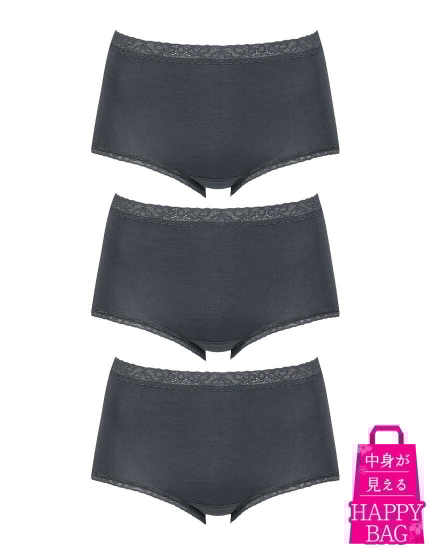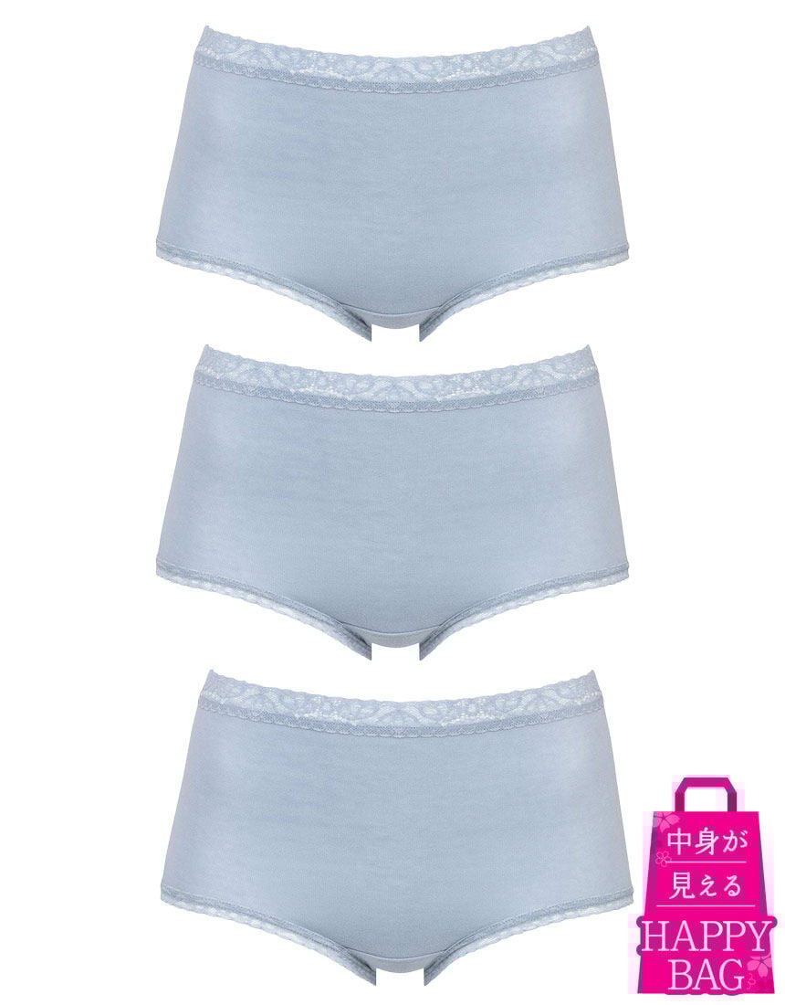お得な福袋〜Happy Bag〜【ウイングのデイリーショーツ(ベーシックショーツ)3枚】が入ったお得なセット!数量限定なので、お早めにどうぞ!!●やさしい肌あたり 脇に縫い目がないフラットな仕様、ウエストと裾は肌あたりのよいレースを使用●ここちよいフィット感 身生地部は、ストレッチ性とフィット感のよい綿混素材・はきこみ丈:ふかめ(深ばき)※商品画像はあくまでイメージです。※ご注文が集中した場合、注文状況が<在庫有り>と表示されていても完売となる場合がございます。※商品によってハンガーが付いているもの、ないものが混在している場合がございます。※こちらの商品につきましては、お客様のご都合による返品や交換は承っておりません。予めご了承ください。※ハッピーバッグ(福袋)のご注文はお一人様10点までになります。