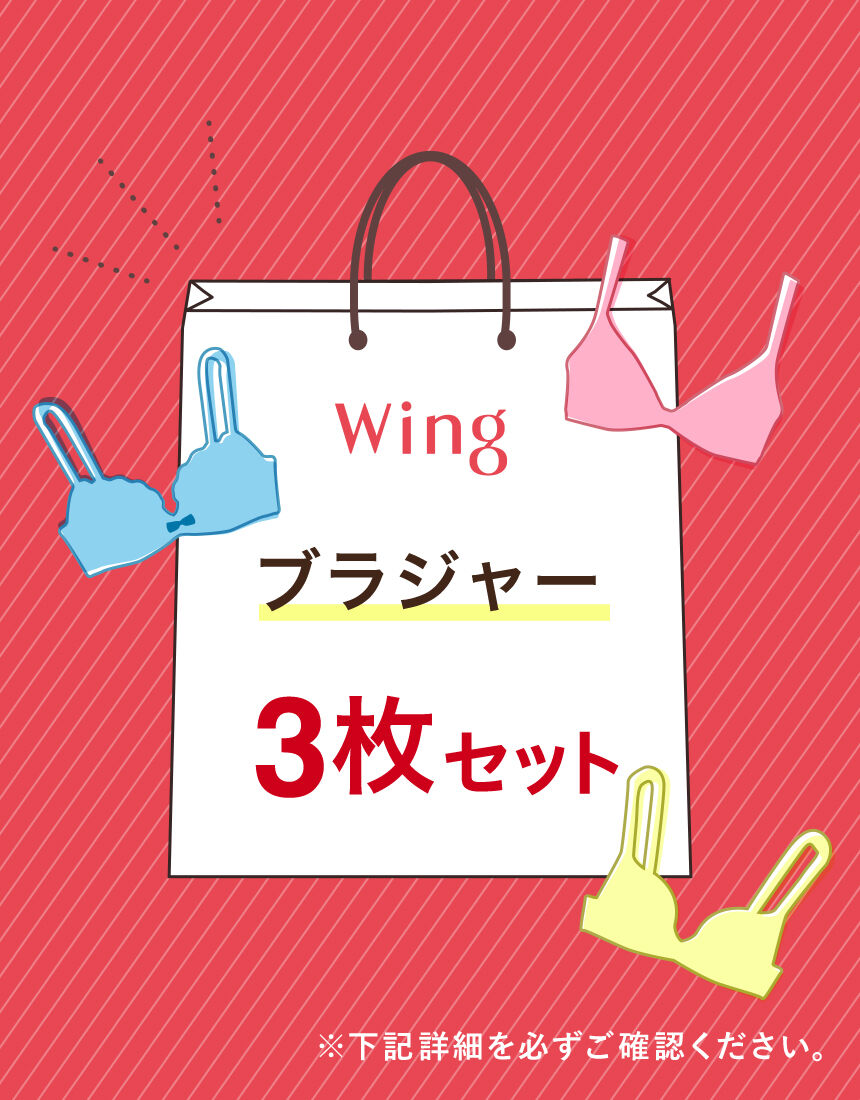 お得な福袋〜Happy Bag〜 数量限定の福袋 【ウイングのワイヤーブラ 3枚】が入ったお得なセット!数量限定なので、お早めにどうぞ!!バラエティに富んだデザインをお楽しみいただけます。※ウイングのワイヤーブラが3枚入っています。※ご注文が集中した場合、注文状況が<在庫有り>と表示されていても完売となる場合がございます。※こちらの商品につきましては、お客様のご都合による返品や交換は承っておりません。予めご了承ください。※カラー表示が「WH」となっているものは、白色を表すものではありません。また、同じデザインで色違いの商品が入っている場合がございます。※ハッピーバッグ(福袋)のご注文はお一人様10点までになります。