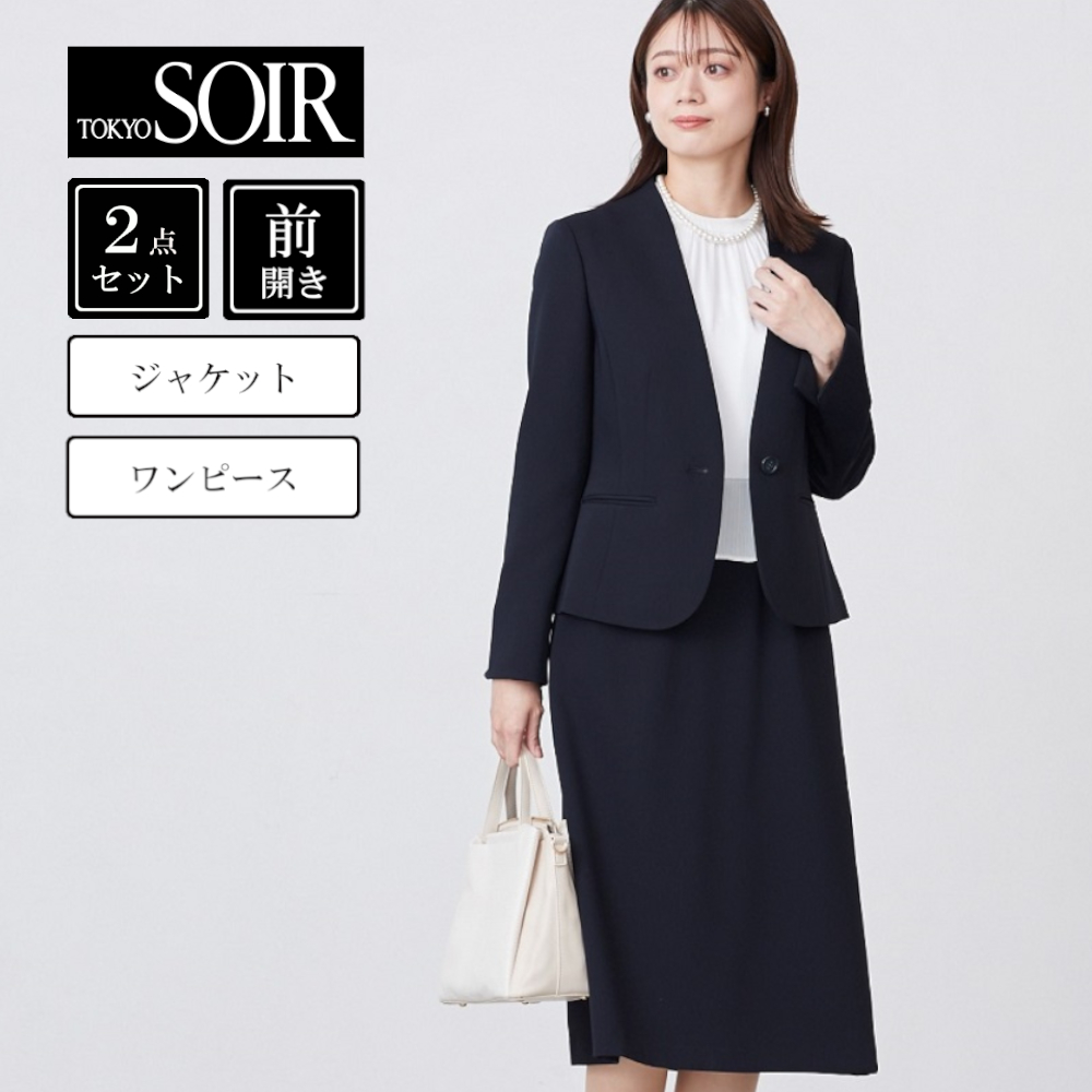 ―デザイン・スタイリング―・ジャケットは、顔まわりがすっきり見えるノーカラー仕様・ワンピは、ウエストで切り替えた2ピース風のデザイン・どちらもシンプルなので使い勝手抜群・入学式や卒業式をはじめとしたセレモニーシーンにぴったり・それぞれセパレートでも使えて便利―素材―・ジャケットは、シワになりにくいさらりとした素材・ワンピースのトップス部分は、透け感のある上品なシフォン素材 ----------- 伸縮性:ややあり 生地の厚さ:普通 質感:さらっとしている サイズ感:普通 推奨季節:春秋冬 -----------東京ソワール/TOKYO SOIRブラックフォーマルは東京ソワールから生まれました。1969年に『株式会社東京ソワール』となり、日本で初めて和服に変わる喪服(ブラックフォーマル)を開発。数あるフォーマルメーカーの中で唯一、オートクチュールからスタートした会社です。フォーマルウエアのリーディングカンパニーとして全国47都道府県に有名デパートやスーパーなどに合計 約1100店舗に展開中。#入学式#卒園式#入園式#卒業式#入学#入園#卒業#卒園#セレモニースーツ#フォーマルセット #フォーマルスーツ #通勤#礼服#式服#結婚式#受験#七五三#発表会#ママ#ワンピーススーツ
