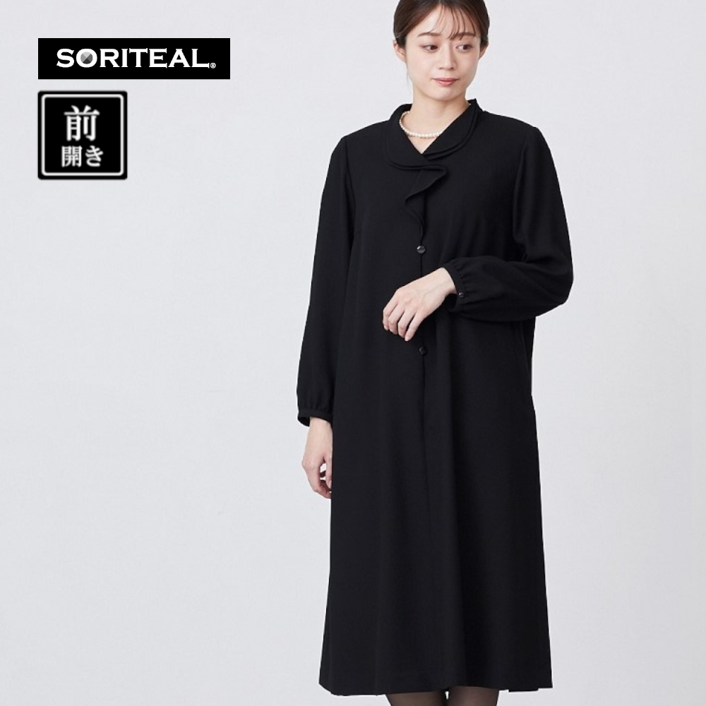 ■【ソリテール/SORITEAL】フリルカラーゆったり前開きワンピ【喪服・礼服】