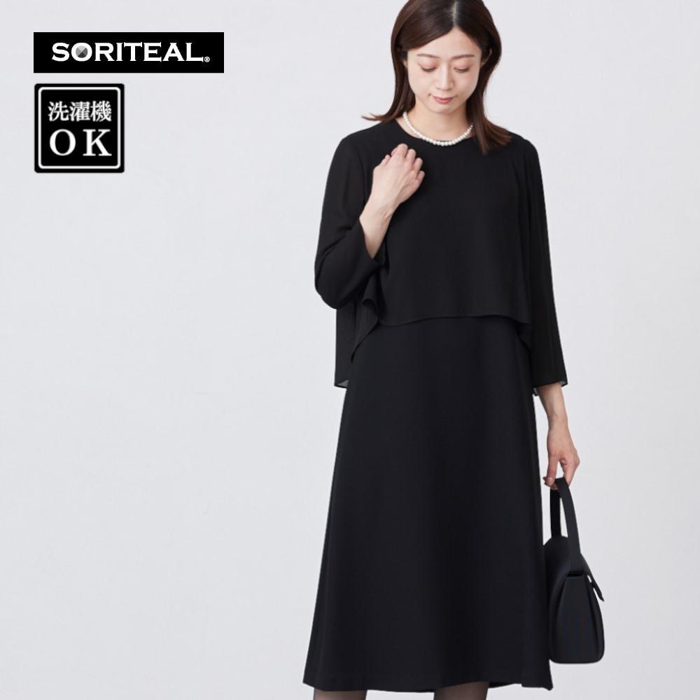 ■【ソリテール/SORITEAL】通年OK重ね着風ワンピース【喪服・礼服】