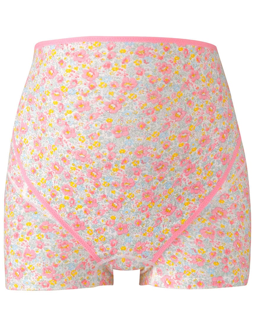 【妊婦帯 パンツタイプ】裾丈:ショート丈●おなか部開閉タイプの調節ベルト付きで検診のときにも便利●クロッチ(股布)付きで一枚ばきが可能●下腹部にはパワーネット内蔵で大きくなるおなかをサポート●内側のおなかささえは折り返し始末で肌あたりがやさしい設計・PIカラーは草原に咲く花をロマンティックなイメージのプリントで表現・KOカラーは線画タッチの花ブーケを濃淡のコントラストのプリントでシンプルに