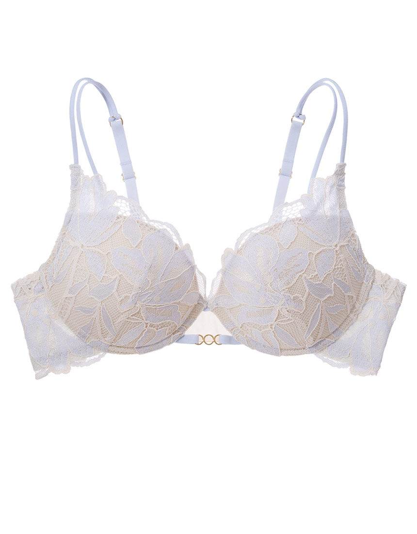【おすすめポイント】・カップとサイドベルトの肌側に、接触冷感機能の生地を使用。着けた瞬間ひんやり涼しい、猛暑対策ブラ。・レースやカップ表側の生地、パッドも通気性を考慮した素材で、ムレにくい。・肌あたりが柔らかなソフトワイヤーを採用し、着け心地らくちん。・ざっくりとした編目で通気性のあるレースをフルに使用。大ぶりの花柄が大人っぽく、爽やか。【こんな人・こんな時に】・汗をかきやすい季節は、ブラのムレ感が気になる・夏向きの涼感ブラでも、しっかり盛りたい・ハードタイプのワイヤー入りブラが苦手【バストメイク・機能】・下厚のカップは通気性のある※穴あきタイプ。適度にボリュームアップしてバストに柔らかくなじみ、丸くきれいなラインをメイク。※弊社従来品との比較・カップ肌側は、触れた瞬間ひんやり感じる接触冷感加工のメッシュ生地。ドット状の凹凸があり、肌に張り付きにくい。・サイドベルトの肌側は、接触冷感機能のある薄手のストレッチ生地。触れた瞬間ひんやり感じ、背中まで爽やか。・カップ下にパネルのないアンダーフリータイプ。着け心地も見た目も軽やか。・カップをカバーするレース下の生地は、通気性のあるダブルラッセルを採用。・柔らかいソフトワイヤーをカップに埋め込んだ仕様で、圧迫感が少なく痛くなりにくい。・サイドベルトは幅広で、脇や背中に段差ができにくい。・サイドベルトの上辺はゴムが直接肌に触れない仕様。・ブランドネームや品質表示はホック内側にプリント。ラベルの縫い付けがないため肌ざわりがスムーズ。【デザイン】・ざっくりとした編目でシアー感が高く、涼しげな大柄レースを全面に使用・ストラップ前側は華奢なマカロニテープ2本使い・センターに3連リング型のチャームをあしらい、洗練されたアクセント
