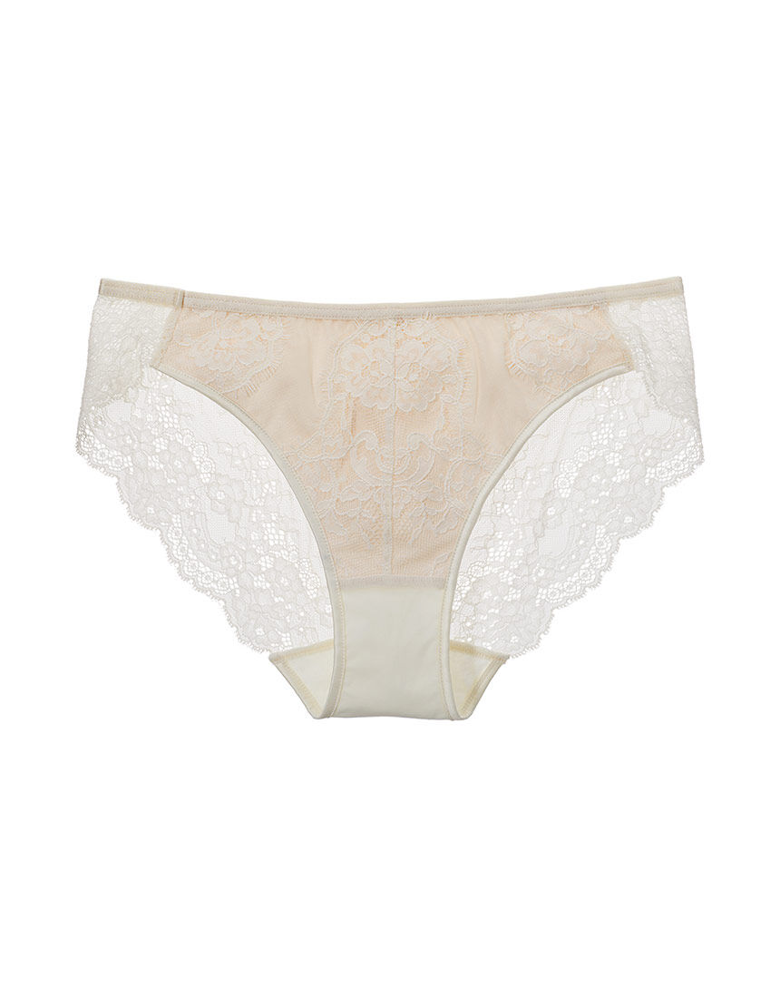 【フロント】・リジッドアイラッシュレースとパワーネットを組み合わせ、モチーフの形に沿って丁寧に接ぎ合わせたデザイン。・ベージュ系の薄手生地をライニングし、レースの繊細な柄行きが引き立つ。肌も透けにくい。【バック】・フロントとは異なる華やかなストレッチレース1枚仕立てで、透け感あり。・伸びがよく快適なはき心地で、レースのふちにゴムを使わずやさしいフィット感。【はき込み】・レギュラー(ふつう)【クロッチ】・表側はフロントと同じパワーネット・肌側はコットン【デザイン】・前後で異なるレースを贅沢に使い、それぞれの美しさを堪能できるショーツ【ドラマティックな日常がはじまる。-SALON by PEACH JOHN-】毎日身につけるランジェリーやラウンジウェアを、少し特別なものにする。それだけで日常のルーティンが輝きはじめ、心にドラマが生まれる。大人になった自分を愛し、これからをポジティブに楽しむために、上質なセクシーのエッセンスを。SALON by PEACH JOHNは、いまの時代をしなやかに生きる女性たちに、いきいきとしたエネルギーと晴れやかな自信をチャージします。