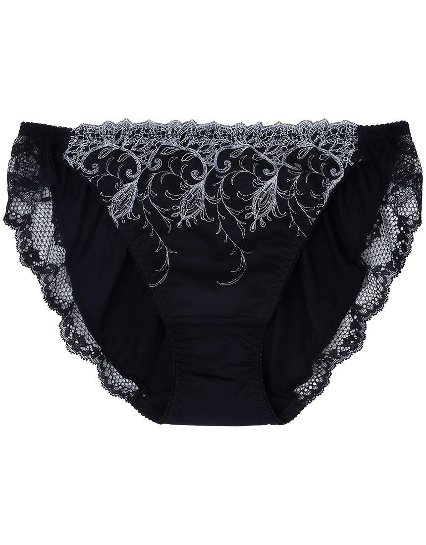 クラシカルで繊細なステッチングで仕上げた、華やかなエンブロイダリーレースのグループ。●フロントにエンブロイダリーレースをほどこしたショーツ。●バックは、はきごこちのよい縦横に伸びる素材を使用。●裾にはストレッチレースをほどこし、アウターにひびきにくい。●フロントは裏打ち付きで透けにくい。