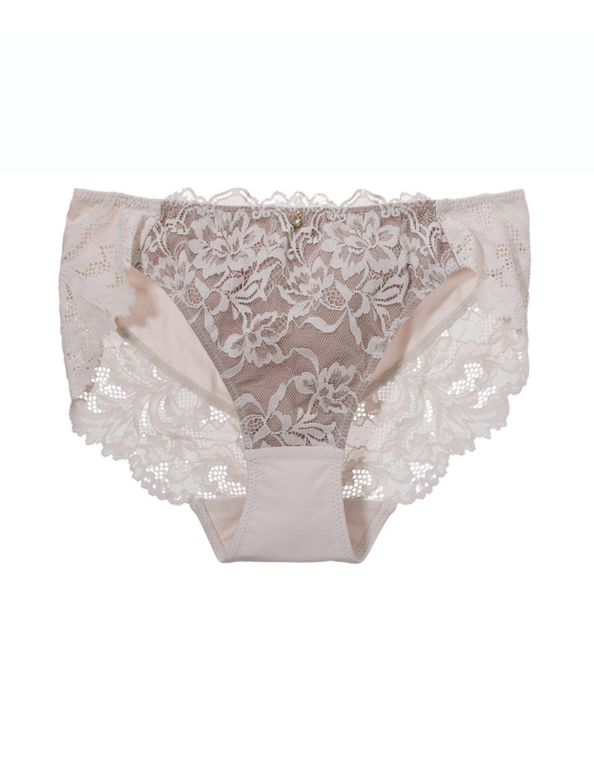 クラシカルで繊細なステッチングで仕上げた、華やかなエンブロイダリーレースのグループ。●抜け感のあるレースをバック全体にほどこした、贅沢な印象のデザインショーツ。●フロントにエンブロイダリーレースをほどこし、繊細な表情に仕上げました。●Lサイズのみ後ろ身頃上部に接ぎがあります。●フロントは裏打ち付きで透けにくい。