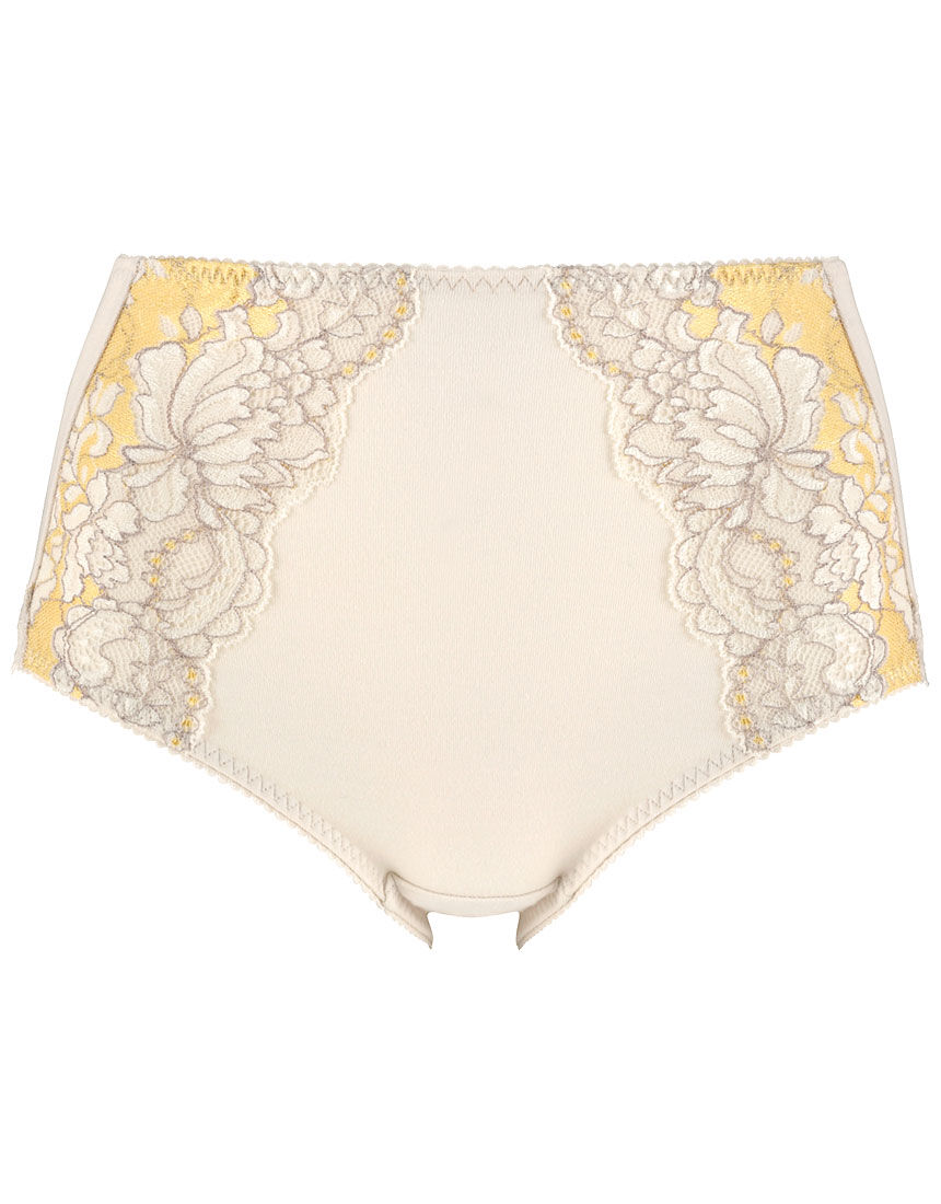 ●ワコールサイズオーダーのブラジャーでJISサイズ相当に対応したコレクション・高貴な美しさをレースで表現 夜明けに広がる優美な光をイメージした、きめ細やかなレースと豪華なバラのアップリケが美しいショーツ