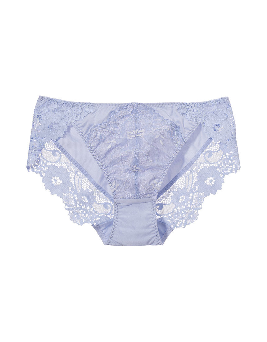 広くて深い海の中に生きるマーメイドの世界をイメージした、繊細でロマンティックなエンブロイダリーレースのグループ。ラメ糸を使用したスカラップと細やかなステッチングで高級感ある印象です。●フロントにエンブロイダリーレースをあしらい、上辺はチュールで抜け感をプラスした軽やかなショーツ。●バックは、はきごこちのよい縦横に伸びる素材を使用しています。●裾にはストレッチレースをほどこし、アウターにひびきにくいです。