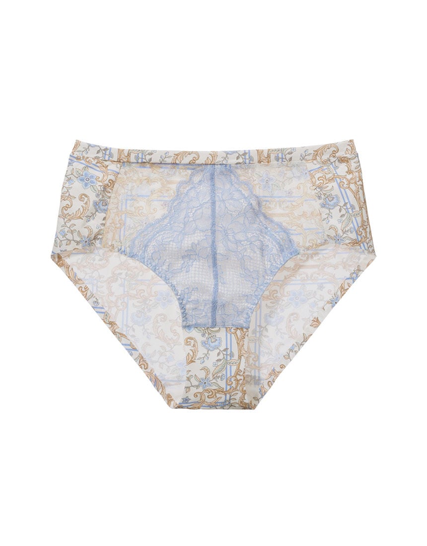 【おすすめポイント】・レトロフェミニンなスカーフ風プリントが目を惹く、気持ち華やぐショーツ。・S〜5Lの豊富な7サイズ展開。・ウエストもバック脚ぐりも肌あたりやさしく、服にラインがひびきにくい。・お笑い芸人 フォーリンラブ バービーさんがプロデュースするコラボブランド「Luhu L dada(ルフルダダ)」のコレクション。・「Luhu L dada」は「気高いおっぱい」をコンセプトにバービーさんのメッセージを込め、さまざまな女性が自分の体を好きになるためのランジェリーを発信。【フロント】・中央は花柄のストレッチレースで、オフホワイトの薄手生地を裏打ちし透け感を緩和。・レースの左右は、スカーフ風プリントの薄手パワーネット。バックと同じ柄で、ほんのり透明感があり軽やか。・ウエストは一周、プリントのストレッチ生地を折り返した二重。ゴム不使用で、やさしい肌あたり。【バック】・バック全面が、スカーフ風プリントのなめらかなストレッチ生地。・後ろ脚ぐりは、生地を折り返した接着仕様。【はき込み】・ハイライズ(深め)【クロッチ】・表側はプリントのストレッチ生地・肌側はコットン