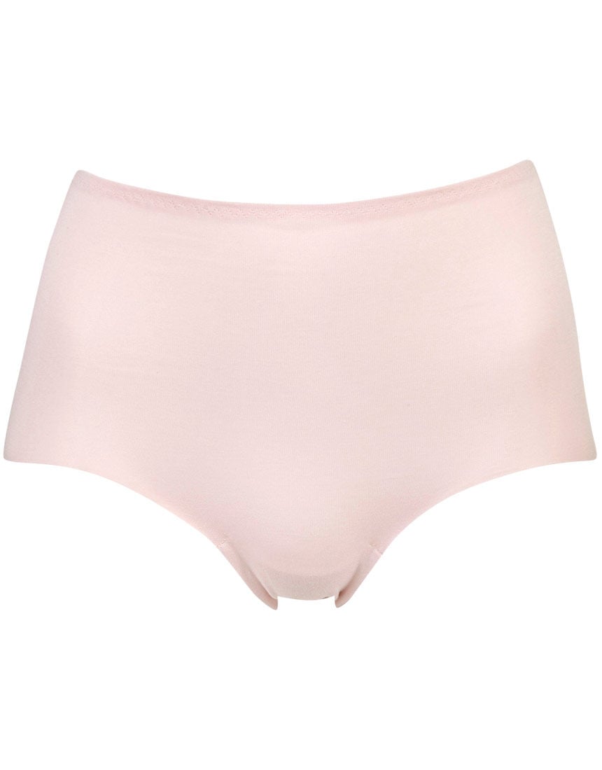 毎日の洋服に合わせやすい、ミニマルなデザインのショーツ。日本製の綿混生地はシルケット加工(※1)でなめらかな高級感のある仕上がり。※1 シルクのような美しい光沢や風合いを生む加工ウエストと足ぐりはゴムを使っていないので、ソフトな肌あたり。足ぐりは深めのカッティングで、座ったときにそけい部(ふとももの付け根前部分)がくいこみにくい。裏打ちは一枚仕立てで、綿100%生地を使用しているので、やさしい肌ざわり。取扱い表示は本体生地にプリントをしているので、肌あたりがやさしい。