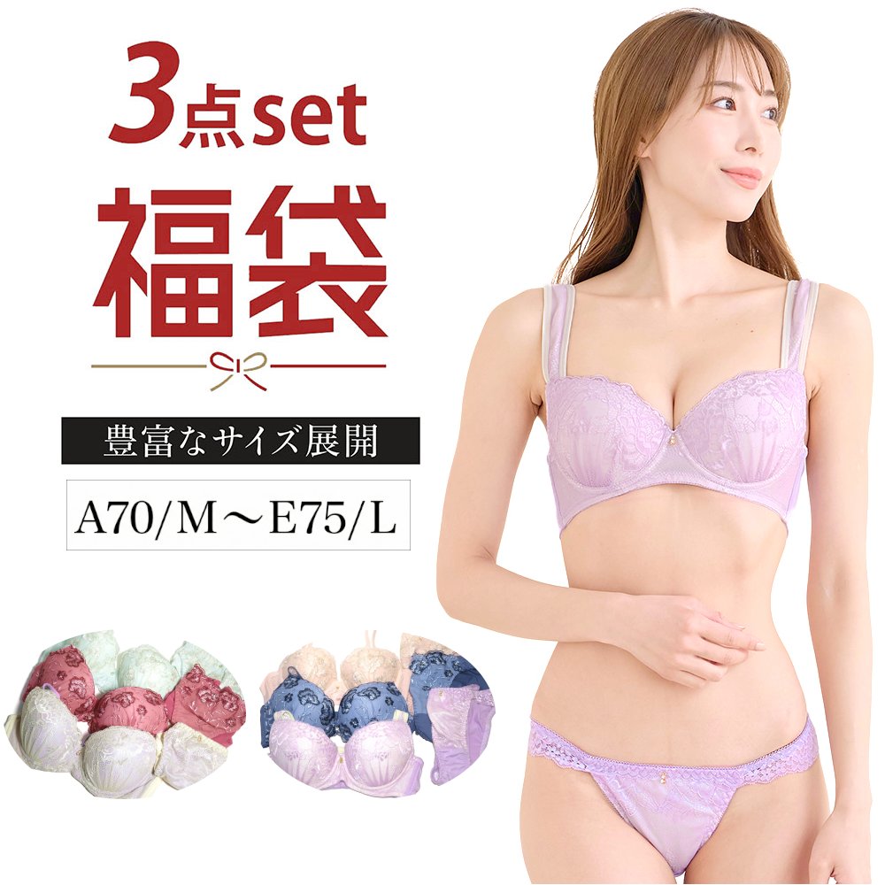 ■【ベルメゾン】【プチプラ】【3枚セット】ブラ & ショーツセット