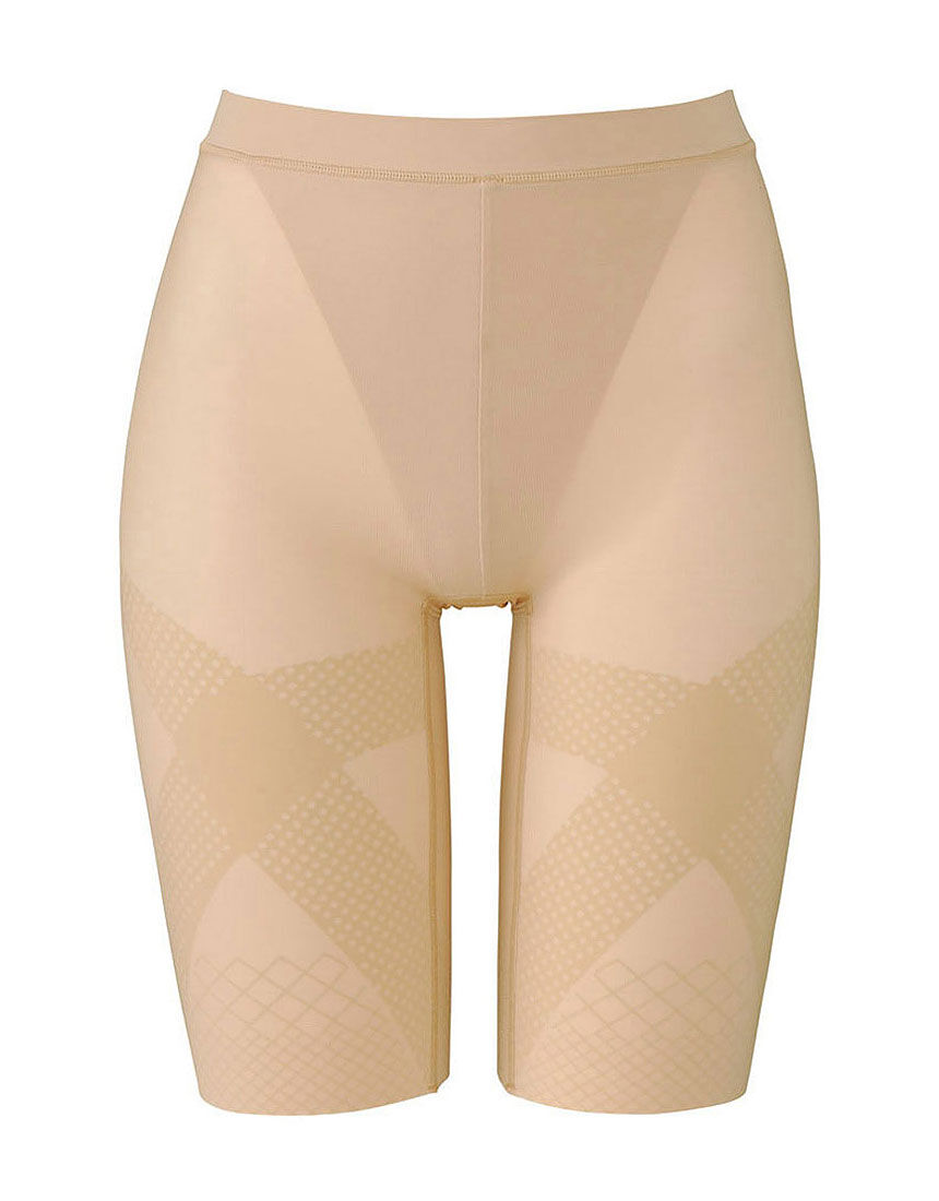 ●エクササイズ歩行への変化が期待できる クロス構造により、歩幅が広くなり、ヒップの筋肉を使いやすいエクササイズ歩行への変化が期待できる●軽やかなはきごこち 薄さ、軽さにこだわった素材を使用し、縫い目のない特殊加工(オパール加工)であて布による機能を一枚の布で発揮●ここちよくおなか押さえ フロントは浮かし構造の裏打ちで、おなか押さえ内蔵型。ウエストはテープレス始末で快適なはきごこち●裾ラインはアウターにひびきにくい 裾はフリーカッティング素材を使用●ふとももに段差がつきにくい ひざ上のロング丈で気になるふとももの段差を軽減※機能の表れ方には個人差があります※商品についている「安全に関するご注意」をよく読んでご使用ください
