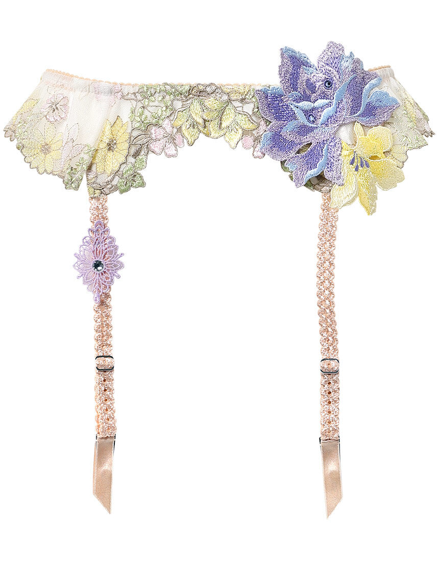 イタリアのローマ出身で宝石彫刻やメダル制作家として有名な「ジュゼッペ・ジロメッティ」の作品からイメージを広げたコレクション。ホリデームードを高めるゴージャスなキャミソールは、カラーによって色が異なるカメオ風のチャームつき。ブラは、なりたいバストシルエットが簡単につくれる2タイプがあります。・アップリケにはラメ糸を使用・アップリケはヴィオーラの花をイメージ美しいデザインディテールが光る、気品あふれるガーターベルト。ひらりと広がるウエストのレースがエレガントな印象に。フロントにあしらわれた繊細なアップリケはバラの花をイメージしました。ゆるやかな曲線を描くカッティングと華やかなレース、花々の調和が優雅なアイテム。シンプルなカラーリングが上品なデザインを引き立て、ホリデーシーズンをスペシャルに彩ります。サルートのシンプルセクシーな定番コレクションにラインアップされた、ガーターベルトを選ばないスタンダードなデザインのガーターストッキングも合わせておすすめZTJ400