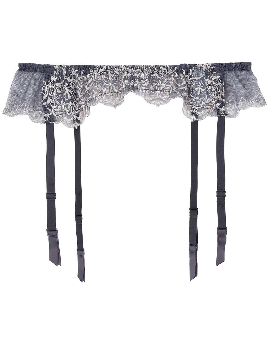 女性らしい、繊細さと高級感のあるレースに、きらめくラインストーンを添えて輝きをプラス。チュールレースでゴージャスに仕上げたガーターベルトです。