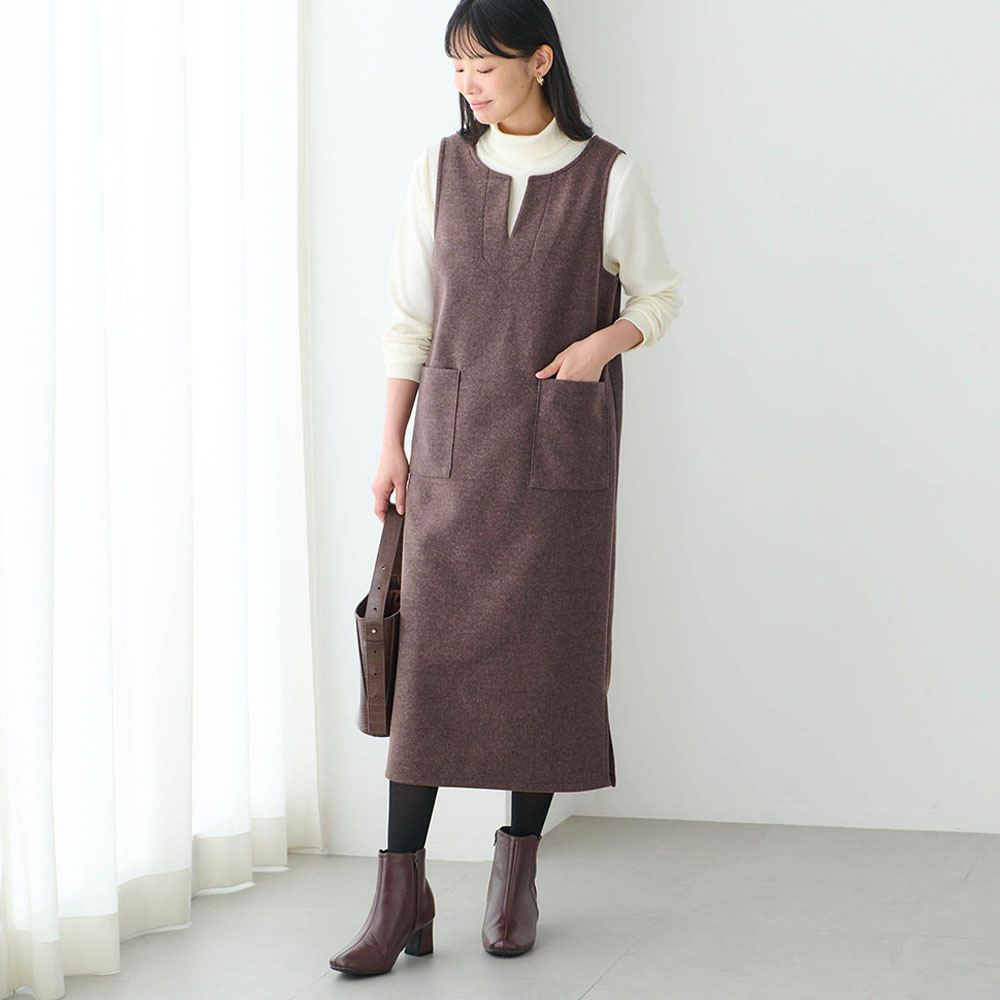 (5900円以上購入で送料無料)裏シャギーであったかジャンパースカートこれからの季節大活躍!!ストンと着れてお洒落 裏シャギーで肌触り抜群のストレスフリーなジャンパースカート