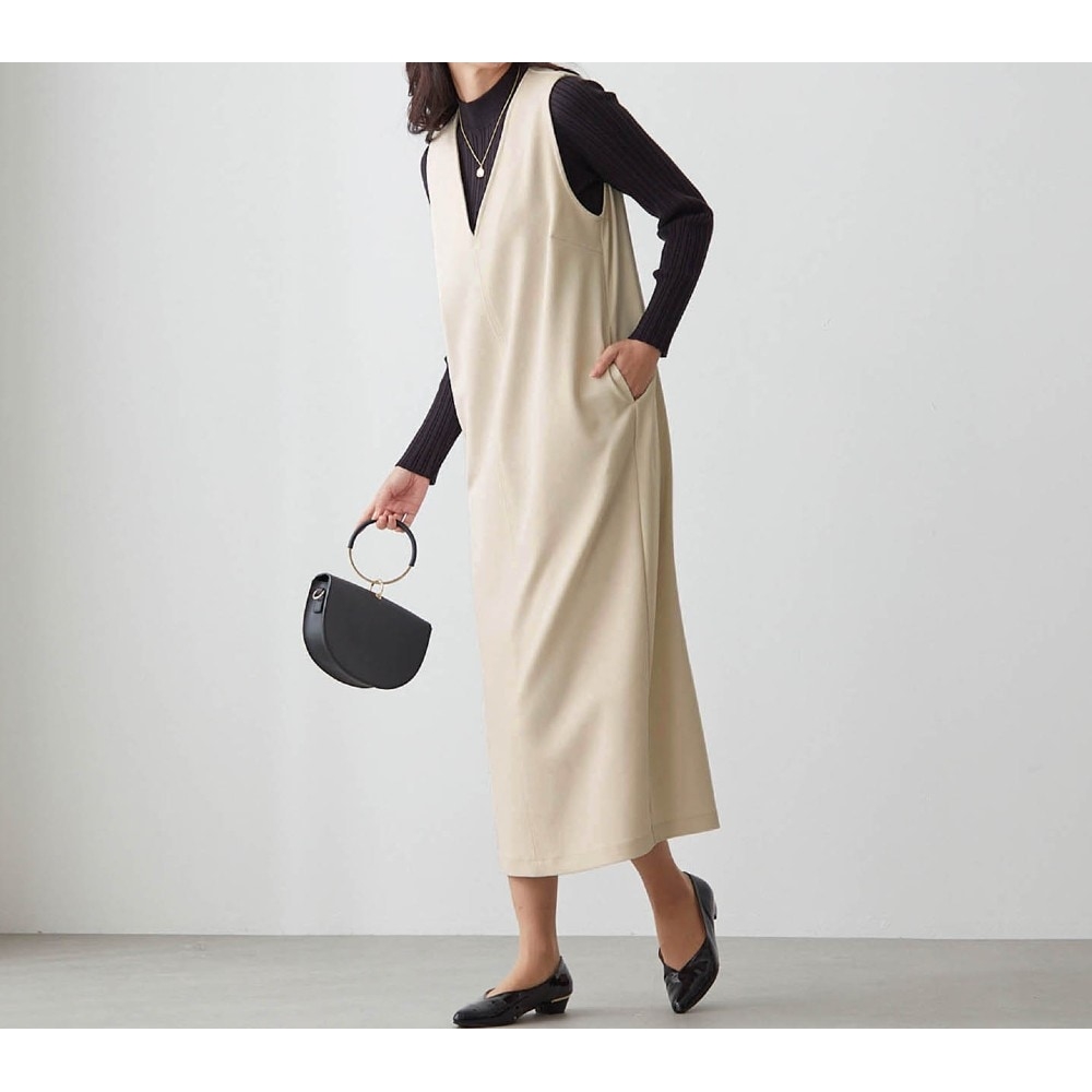 ―デザイン・スタイリング―・すとんと落ちる I シルエットで、大人が着やすい落ち着いた雰囲気に・女性らしさ漂うVネックは顔まわりがすっきり見えるのもうれしい・ロング丈ながら、後ろ中央にベンツを施すことで、動きやすさを確保・108cmと118cmの2タイプの丈をご用意―素材―・きちんと感がありながら着心地抜群のストレッチジョーゼット素材を採用・ほどよくハリがありながら360度のストレッチ性があり着心地が抜群―機能―・防シワ性に優れているので、きちんと感をキープSN by Style Note(エスエヌ バイ スタイルノート)『Style Note(スタイルノート)』の頭文字を取ったSN。手始めにまずこちらから。センスはそのままに、チャレンジしやすい価格でお届けするスタイルノートのセカンドラインブランドです。