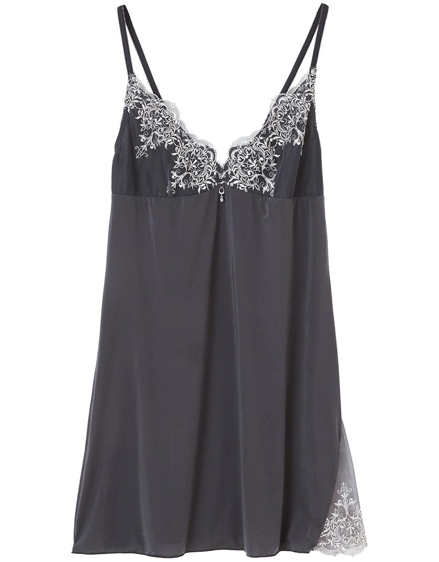 アール・ヌーヴォーを代表する画家である「アルフォンス・ミュシャ」の作品からインスピレーションを得たコレクション。ミュシャの作風に見られる透明感のある色彩をオンプリント手法で表現し、ゴージャスながらも軽やかな印象に。●しなやかになじむ着ごこち 上品な光沢感のあるスムース素材を使用・胸もとのレースとアップリケには刺繍の柄に合わせたプリントレースを使用・胸もとのレースとアップリケにはラメ糸を使用・アップリケはバラの花をイメージ上品な透け感のあるレースとシンプルでなめらかな素材の組み合わせがエレガントなスリップ。胸もとには鮮やかな花々をあしらいました。アンダーバスト部分から脇へとまとうように飾ったゴージャスなアップリケは美しいバラの花がモチーフ。自由でしなやかなレースデザインが優雅な印象を与えます。裾はゆるやかな曲線を描くアシンメトリーなカッティングに。オリエンタルな雰囲気と気品が漂う一枚です。