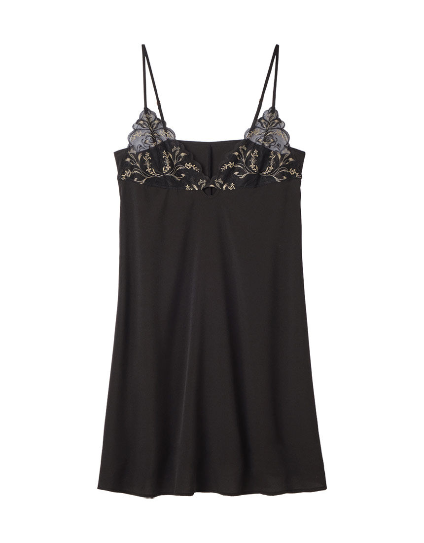 情熱的なフラメンコの衣装から発想した、妖艶な魅力を奏でるグループ。クレマチスの花が華やかなアクセント。2WAYの着こなしが楽しめるセットアップやゴージャスなランジェリードレスが、バカンスを盛り上げます。●しなやかになじむ着ごこち 上品な光沢感のあるスムース素材を使用・ブラレットとオーバースリップのセット・ブラレットには取りはずし可能なパッド入り・オーバースリップの胸もとには刺繍の柄に合わせたプリントレースを使用・オーバースリップの胸もとのレース、ブラレットのフロントとオーバースリップのバックのアップリケにはラメ糸を使用・アップリケにはクリスタルを使用(オーバースリップのフロントのアップリケをのぞく)・アップリケはクレマチスの花をイメージ情熱的なシルエットに心を躍らせて。スペインの伝統芸能であるフラメンコの衣装からインスピレーションを受けた、艶やかなランジェリードレス。存在感のあるアップリケは、鮮やかなパティオで咲くクレマチスの花をイメージしました。ドレープの美しいスカートが優雅な雰囲気を演出します。ブラレットは、シンプルな胸もとに飾った大胆なアップリケが主役のように引き立つデザイン。セットでも別々でも楽しめる特別感のあるアイテムが、旅先やおうち時間を華やかに彩ります。多彩な文化と豊かな歴史が混ざり合うスペインのムードを楽しんで。【ブラレット】洗濯方法:手洗い素材:ポリエステル、ナイロン、ポリウレタン、(スリット糸使用)