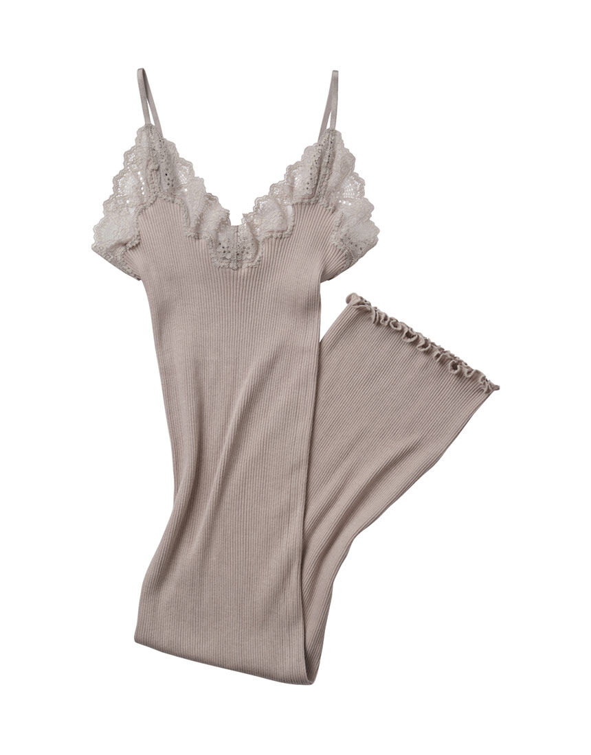 【おすすめポイント】・環境にも人にもやさしいオーガニックコットンのスリップ。・伸びよいリブ生地で、ふんわりやわらかな着心地。・暑い季節の汗対策や、肌寒い季節の冷え対策に、一年を通じて活用できる。・リピーターの多い人気シリーズ。【こんな人、こんな時に】・高品質の天然素材にこだわる方に・ワンピースやスカートスタイルのインナーとして、体温調節や透け感の防止に・部屋着や、見せるインナーとしても【デザイン】・ボディにナチュラルフィットするシルエット・丸編みでサイドに縫い目がないため、肌あたりがスムーズ・フロントはVネック、バックは水平なライン。肩ひもは華奢なゴムストラップ・スタイリッシュな柄行きのストレッチレースを前後のネックラインにトリミング・ひざ上くらいの丈【素材】・身生地は、農薬・肥料の厳格な基準を守って栽培される、環境と人にやさしいオーガニックコットンリブ・ロープライスで気軽にサステナブルな取り組みに貢献できる