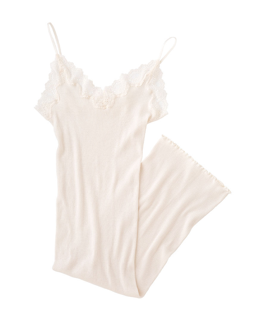 【おすすめポイント】・環境にも人にもやさしいオーガニックコットンのスリップ。・伸びよいリブ生地で、ふんわりやわらかな着心地。・暑い季節の汗対策や、肌寒い季節の冷え対策に、一年を通じて活用できる。・レビュー高評価、リピーターの多い人気シリーズ。【こんな人、こんな時に】・高品質の天然素材にこだわる方に・ワンピースやスカートスタイルのインナーとして、体温調節や透け感の防止に・部屋着や、見せるインナーとしても【デザイン】・ボディにナチュラルフィットするシルエット・丸編みでサイドに縫い目がないため、肌あたりがスムーズ・フロントはVネック、バックは水平なライン。肩ひもは華奢なゴムストラップ・スタイリッシュな柄行きのストレッチレースを前後のネックラインにトリミング・ひざ上くらいの丈【素材】・身生地は、農薬・肥料の厳格な基準を守って栽培される、環境と人にやさしいオーガニックコットンリブ・ロープライスで気軽にサステナブルな取り組みに貢献できる