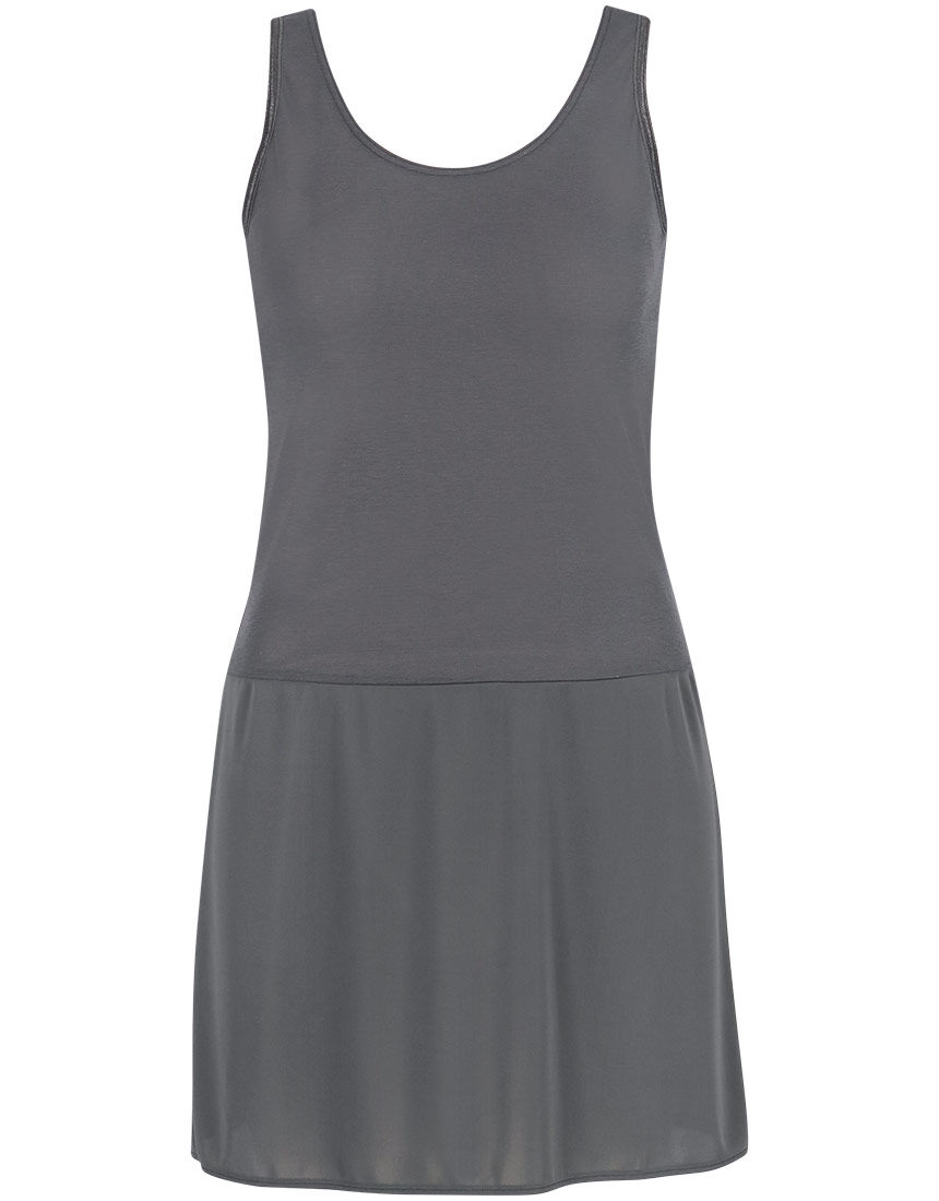 【おすすめポイント】・とろけるような着心地でレビュー高評価&ロングセラーのインナー。・薄手でボディにぴったりフィット。洋服をすっきりと着こなせる。・腰から下をすべりの良い生地に切り替えた異素材コンビ。ウエスト部がもたつかず、タイトなワンピースも美しく着こなせる。・トップ部の生地にアロエ成分を使用した保湿加工を施し、乾燥する季節にうれしい。・脇に抗菌防臭・消臭加工を施した汗取りパッド付き。【こんな人、こんな時に】・寒い季節の防寒対策に・ワンピースやスカートスタイルのインに【デザイン】・前後とも深いVネックにストレッチレースをトリミング。服からのぞきにくい・肩にぴたっとフィットするキャップスリーブ。半袖からチラ見えしにくい・ひざ上丈。裾両サイドにスリット入りで脚さばき良し【素材】・トップ部はとろみがあり肌ざわり抜群の、薄手レーヨンベア天竺。ストレッチ性にすぐれ、ボディにフィットして着ぶくれしにくい・肌と生地の間にすき間ができないから、あたたかさを逃がしにくい・トップ部の生地にアロエ成分による保湿加工・ペチコート部はすべりの良いポリエステル生地[クロ(DR)]定番の無地ブラック。レースとペチコート部もブラックで統一。[グレー(TU)]スタンダードな杢グレー。レースとペチコート部も近い色味のグレーでシンプルに。[レースベージュ(BE)]肌なじみの良いベージュに、ホワイトでレース柄をプリント。レースとペチコート部もベージュ。淡い色味の服にも透けにくい。[フラワーホワイト(WH)]ホワイトのベースに、レッド系の小花を散りばめた可憐なプリント。レースとペチコート部もホワイト。[ドット(KA)]ココアブラウンをベースに、モノトーンのプチハートとリボン柄をプリント。一見ドット柄で、さりげない可愛らしさ。レースとペチコート部もブラウン。[グランフラワー(PO)]くすんだラベンダーカラーをベースに、ブルーグレーの濃淡で大人っぽいブーケ柄をプリント。レースとペチコート部はグレー。【とろけるような着心地+保湿加工-It'sモイスティ- 】薄手のレーヨンベア天竺はとろみがあって伸びが良く、しっとり肌に吸い付くようにフィット。