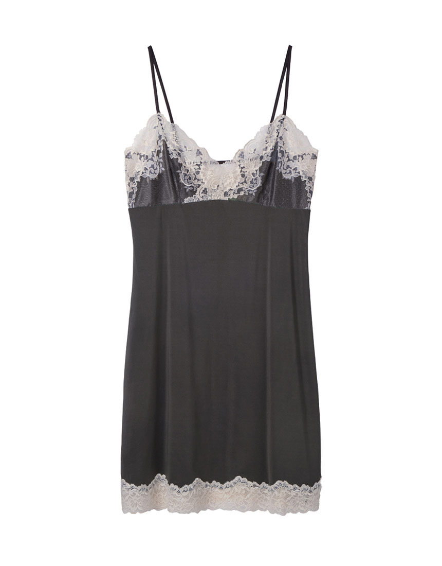 ■上品な色気を漂わせるスリップ。カーデやローブを羽織って優美な部屋着としても。ツートーンレーススリップ スリップ