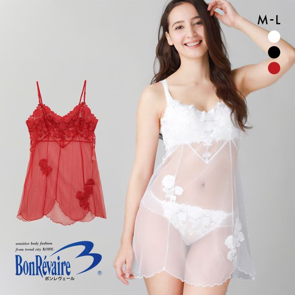 ■【メール便(7)】 ボンレヴェール BonRevaire バラ柄チュールレース シースルー レース ミニスリップ 日本製