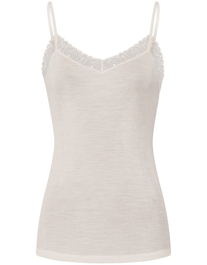 胸もとから脇下まで贅沢にあしらわれたジャカードレースが繊細で美しいキャミソール軽やかな着ごこちの、秋冬のワードローブに加えておきたい一枚ウールは、南アフリカの農場で羊にやさしい飼育方法で生産された"ノンミュールジングウール"を使用身生地には保温性のある素材を使用しており、肌寒い日におすすめのアイテム立体感のある繊細なジャカードレースがほどこされた、あたたかみのある上質なリブ素材を使用。メリノウールとシルクの混紡素材はやわらかく軽い着用感で、寒い日の重ね着におすすめです。※掲載サイズは輸入元サイズです。必ず、ページ内に掲載しているサイズ表をご確認ください。