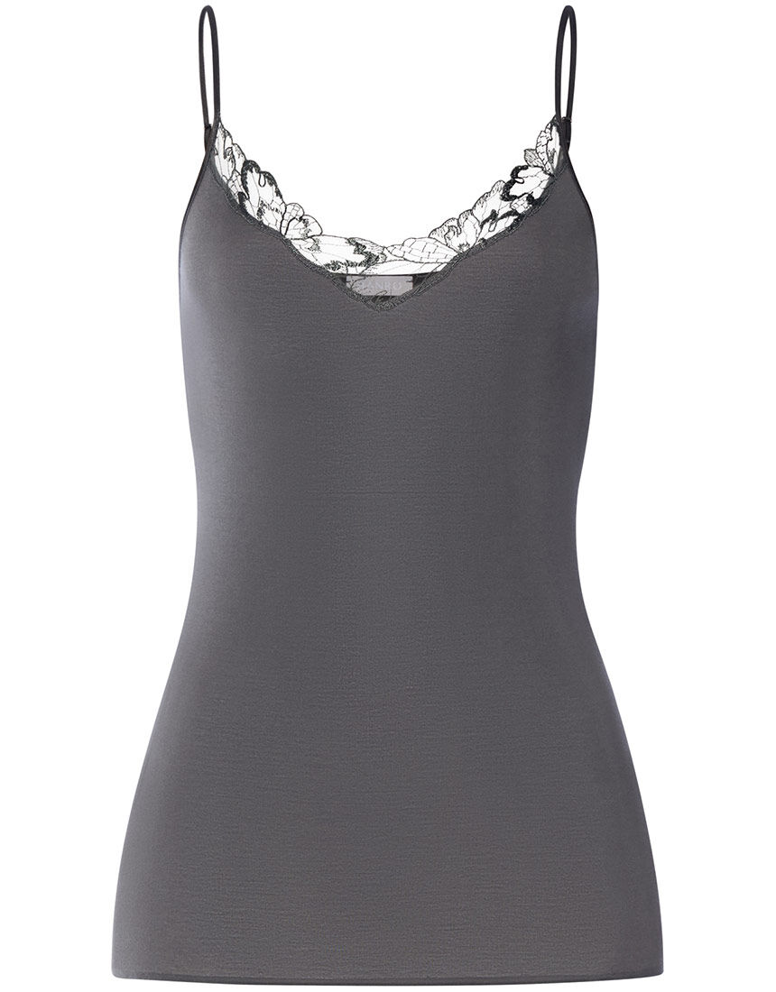 クラシカルで繊細なステッチングで仕上げた、華やかなエンブロイダリーレースのグループ。●身頃にエンブロイダリーレースとチュールを重ねた、軽い印象のキャミソール。