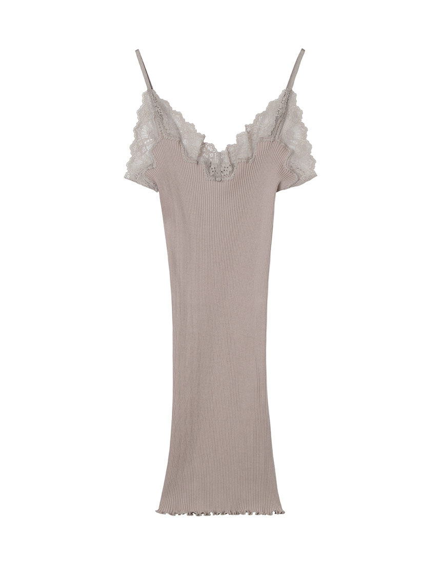 ■【肌に優しいオーガニックコットン。リブが伸びて気持ちよくフィット】オーガニックコットンレーストリム キャミソール