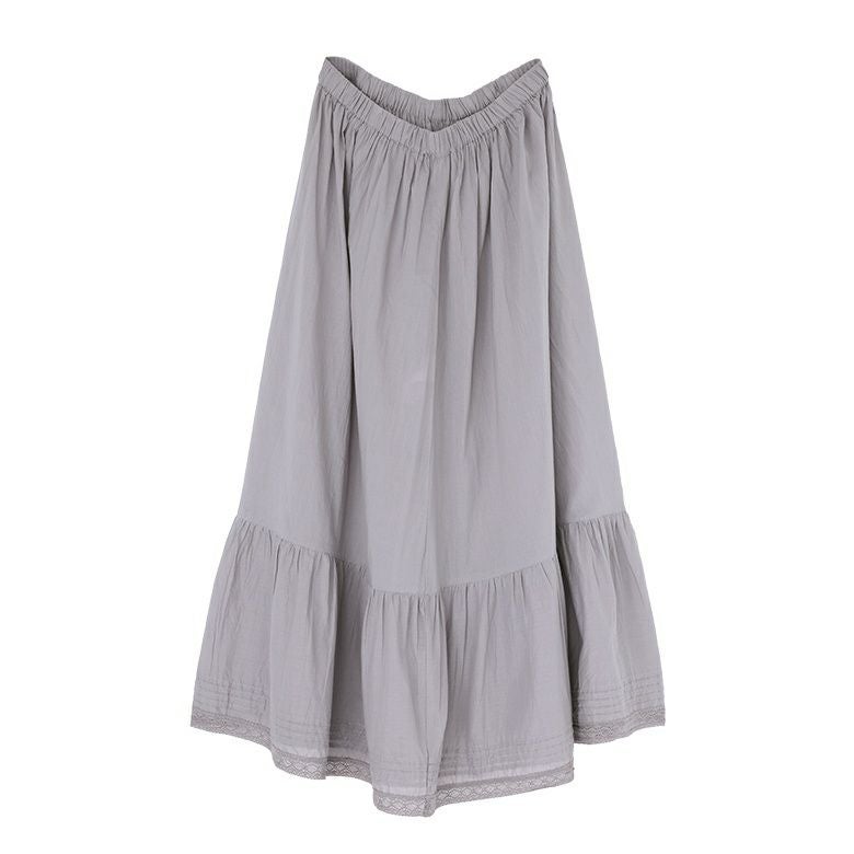 デザインワンピースやスカートに合わせる、レイヤード用ペチスカート。裾にはピンタック4本と同色のレーステープをあしらい、華やかさをプラス。ティアード切り替えでしっかりと分量感のあるデザインです。ウエストは総ゴム仕様で快適な穿き心地です。 素材薄手でさらりとした肌触りのコットン100%生地。ナチュラルで柔らかな風合いのインド綿です。 コーディネートワンピースやスカートの下にレイヤードするほか、デニムパンツの上にレイヤードするスタイルもおすすめです。 スタッフ試着データ【フリーサイズ】着丈(ウエスト穿き):くるぶし上3cm位ウエスト:ゆったりヒップ:ややゆったり太もも周り:ゆったり全体:ゆったり広がりすぎない綺麗なシルエットで着られました。ウエストもゴムで楽ちんです 【フリーサイズ】着丈(ウエスト穿き)